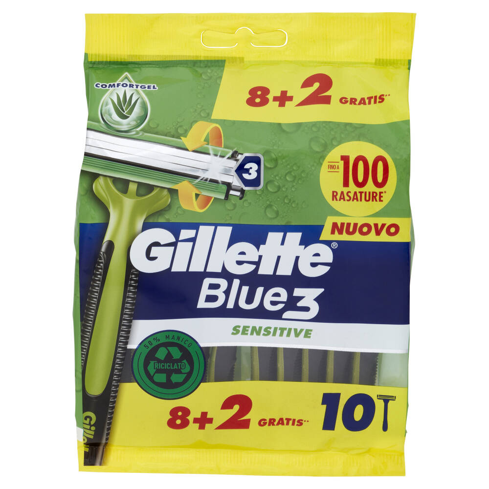 Gillette Rasoio Uomo Blue3 Sensitive Usa e Getta a 3 Lame, Confezione da 8 rasoi+2 Gratis = 10 Rasoi