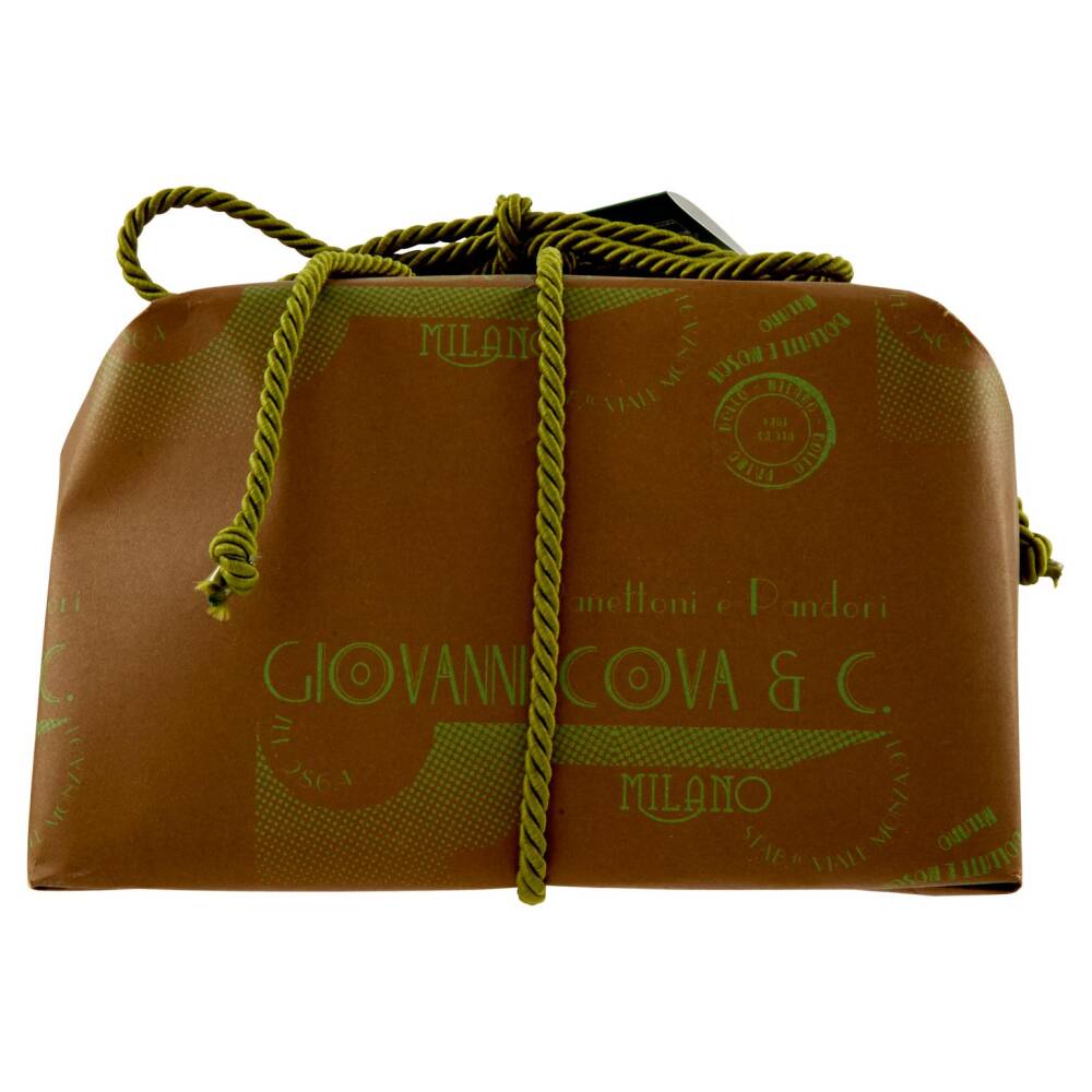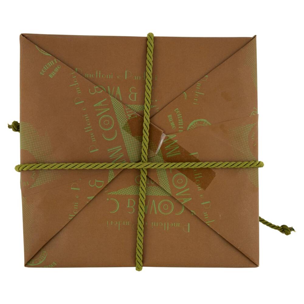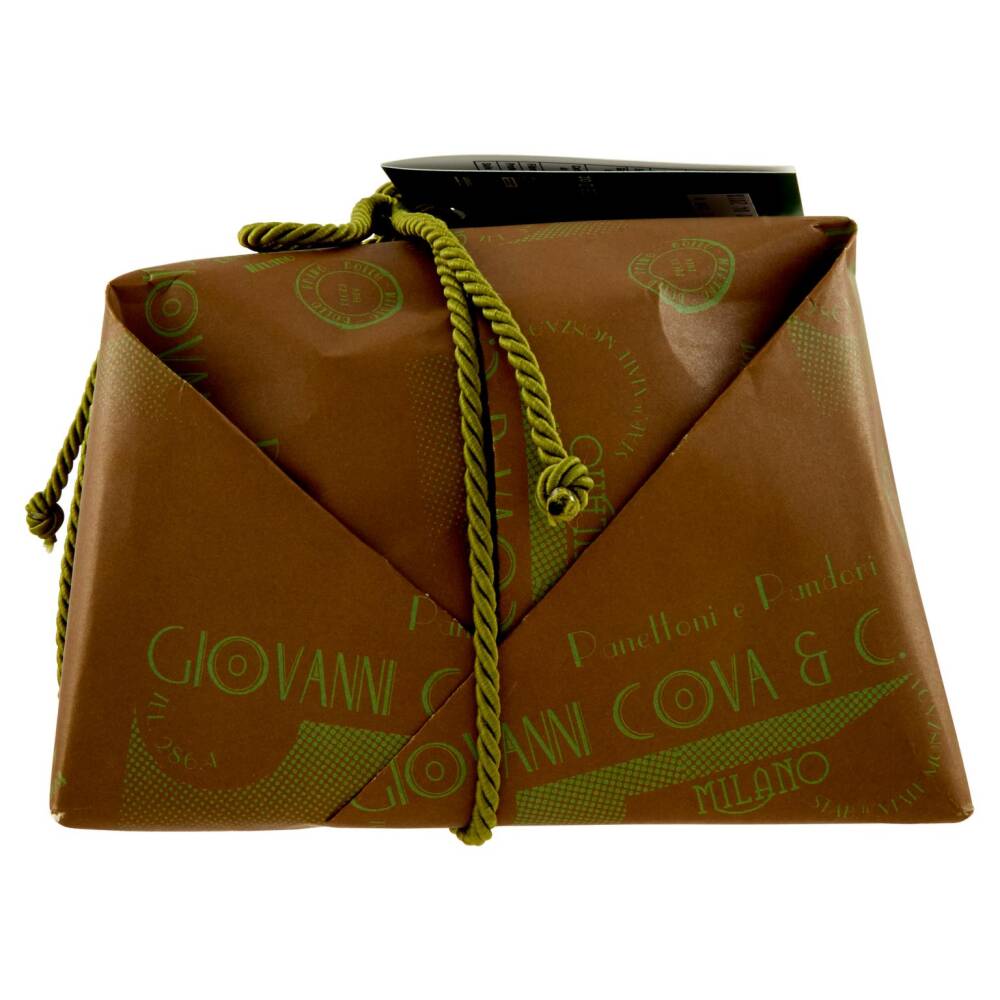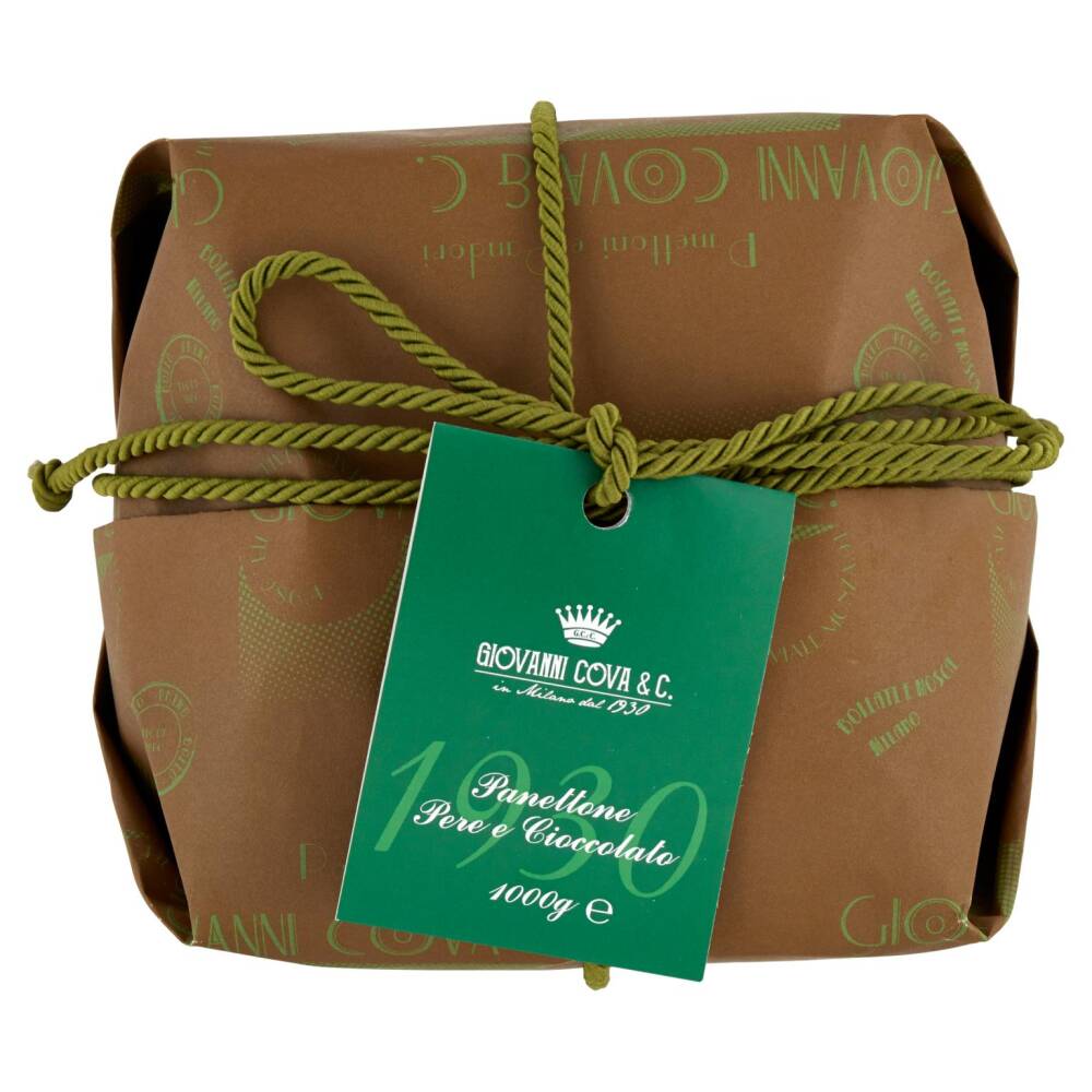 Panettone con cubetti di pera canditi e gocce di cioccolato, senza uvetta e senza agrumi canditi. Prodotto dolciario da forno a lievitazione naturale