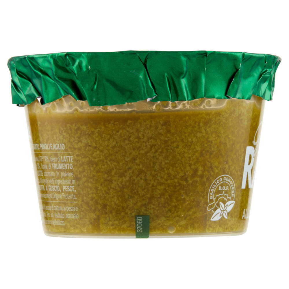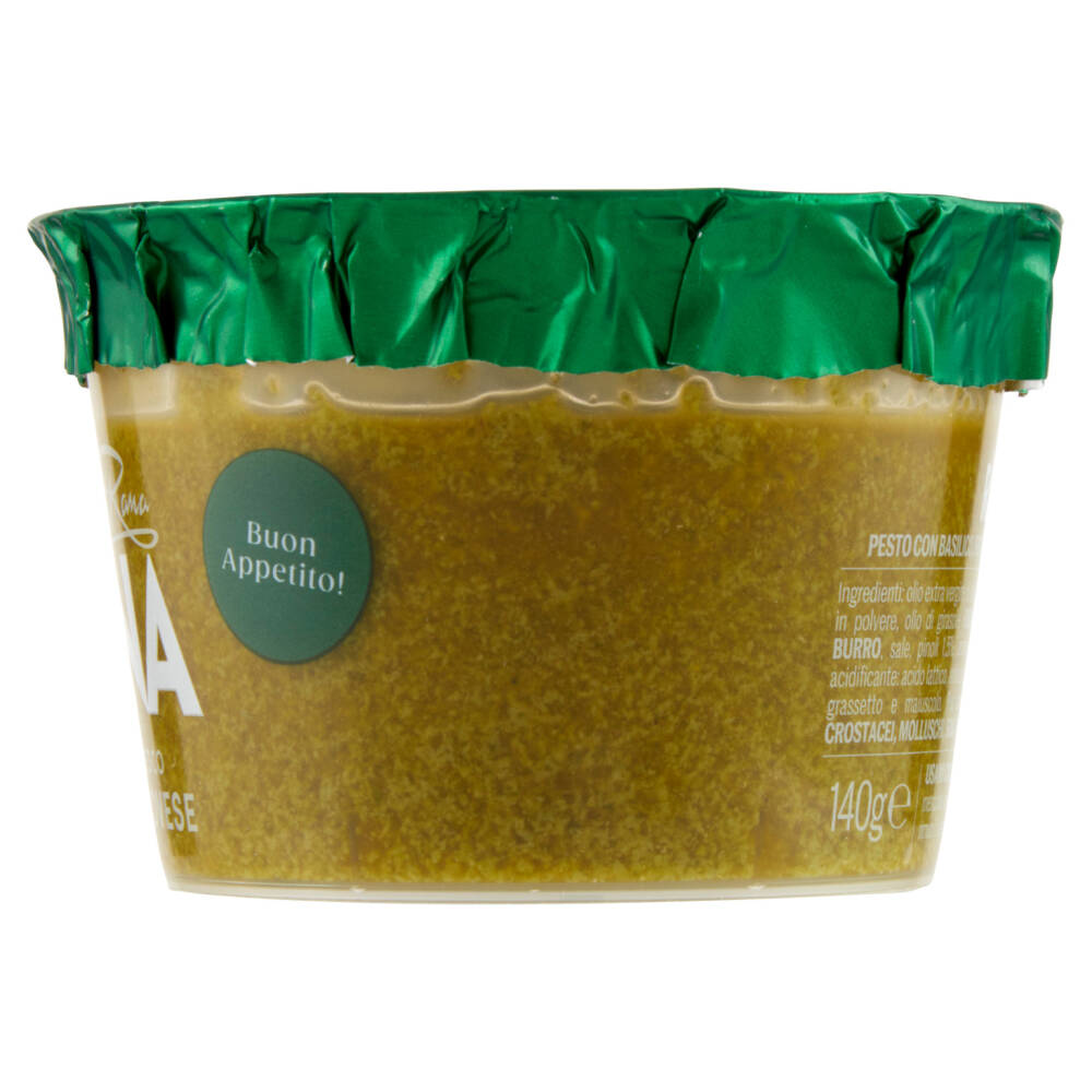 Olio extra vergine di oliva 38% Basilico Genovese DOP* 18% Siero di latte in polvere Olio di girasole Formaggio grattugiato 8% Farina di frumento Burro Sale Pinoli 1,5% Aromi naturali Aglio 1% Latte scremato in polvere Acidificante: acido lattico Antiossidante: acido ascorbico Può contenere uova, frutta a guscio, pesce, crostacei, molluschi, soia, sedano *DOP: Denominazione di Origine Protetta