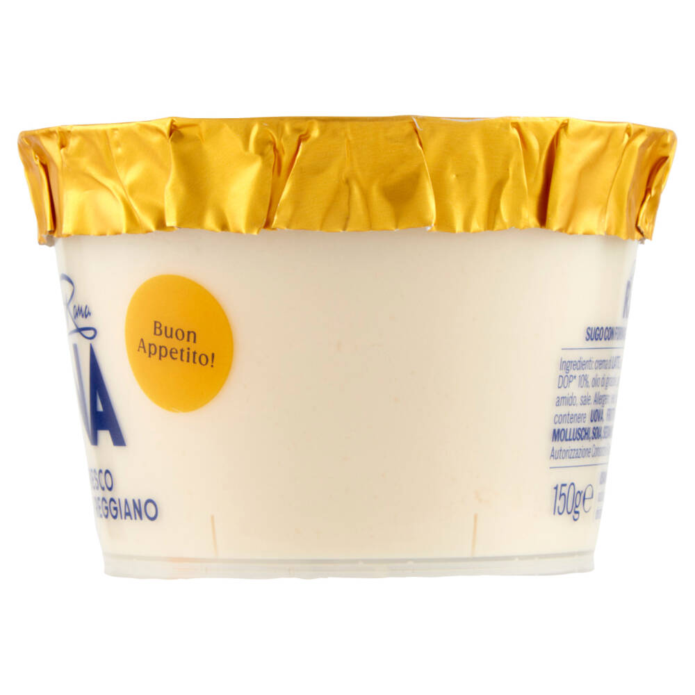 Crema di latte Acqua Formaggio Parmigiano Reggiano DOP* 10% Olio di girasole Aromi naturali (contengono frumento) Amido Sale Può contenere uova, frutta a guscio, pesce, crostacei, molluschi, soia, sedano *DOP: Denominazione di Origine Protetta. Autorizzazione Consorzio Parmigiano Reggiano