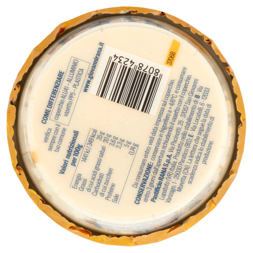 Fresco Conservazione: conservare in frigorifero a + 4/6°C e consumare entro 3 giorni dall'apertura richiudendo il vasetto con il coperchio.
