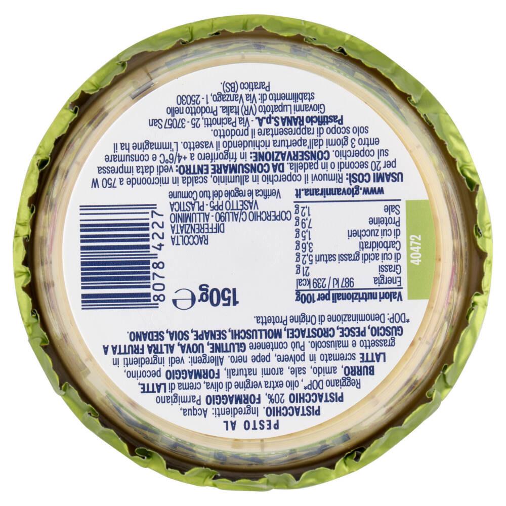 Potrebbe contenere Sedano, Potrebbe contenere Crostacei, Potrebbe contenere Uova, Potrebbe contenere Pesce, Potrebbe contenere Glutine, Contiene Latte, Potrebbe contenere Molluschi, Potrebbe contenere Senape, Contiene Pistacchi, Potrebbe contenere Soia, Potrebbe contenere Frutta a guscioAltro testo relativo ad allergeni