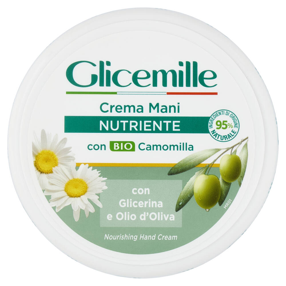 Crema nutriente specifica per la cura delle mani secche e screpolate. Dona sollievo e svolge un'azione idratante e lenitiva. Formulata con Glicerina Vegetale (30%), Olio di Oliva ed Estratto Biologico di Camomilla.