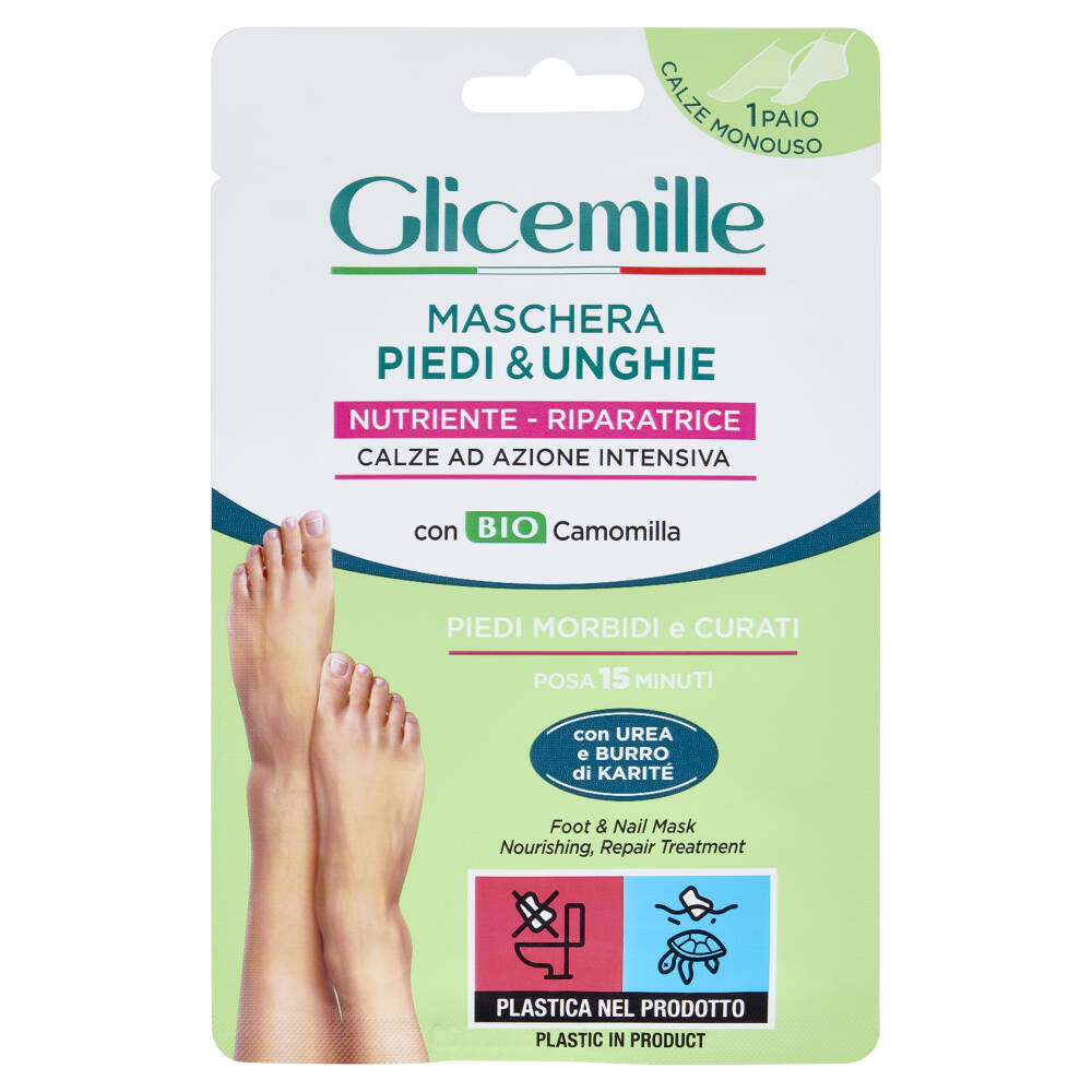 La Maschera Piedi & Unghie è un trattamento professionale in pratiche calze monouso, studiato per nutrire e riparare la pelle secca e screpolate dei piedi.