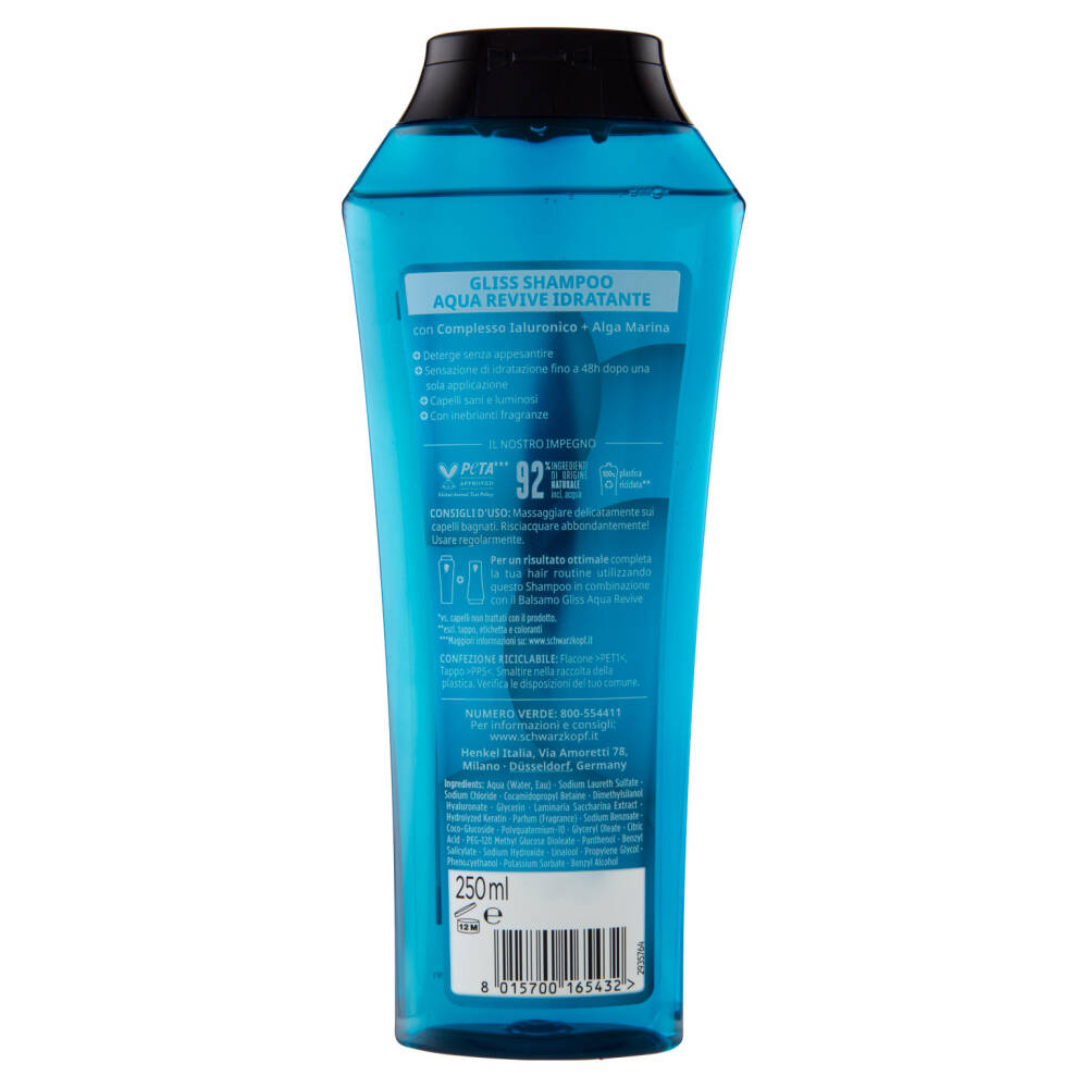 Per un risultato ottimale completa la tua hair routine utilizzando questo Shampoo in combinazione con il Balsamo Gliss Aqua Revive