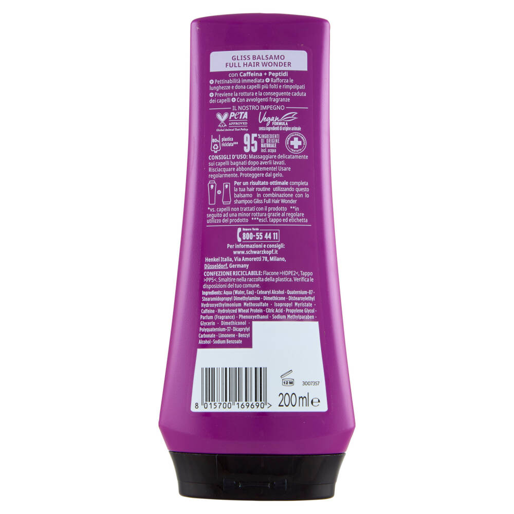 Per un risultato ottimale completa la tua hair routine utilizzando questo balsamo in combinazione con lo shampoo Gliss Full Hair Wonder