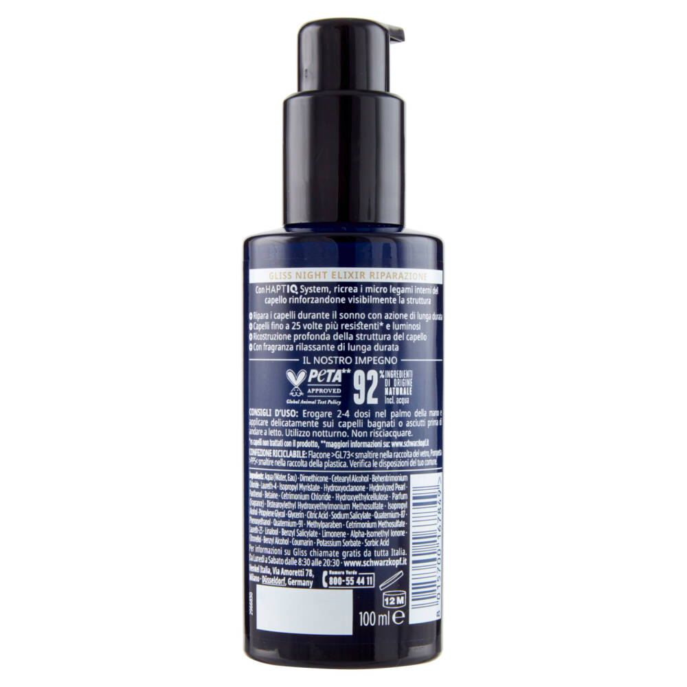 Consigli d'uso: Erogare 2-4 dosi nel palmo della mano e applicare delicatamente sui capelli bagnati o asciutti prima di andare a letto. Utilizzo notturno. Non risciacquare.