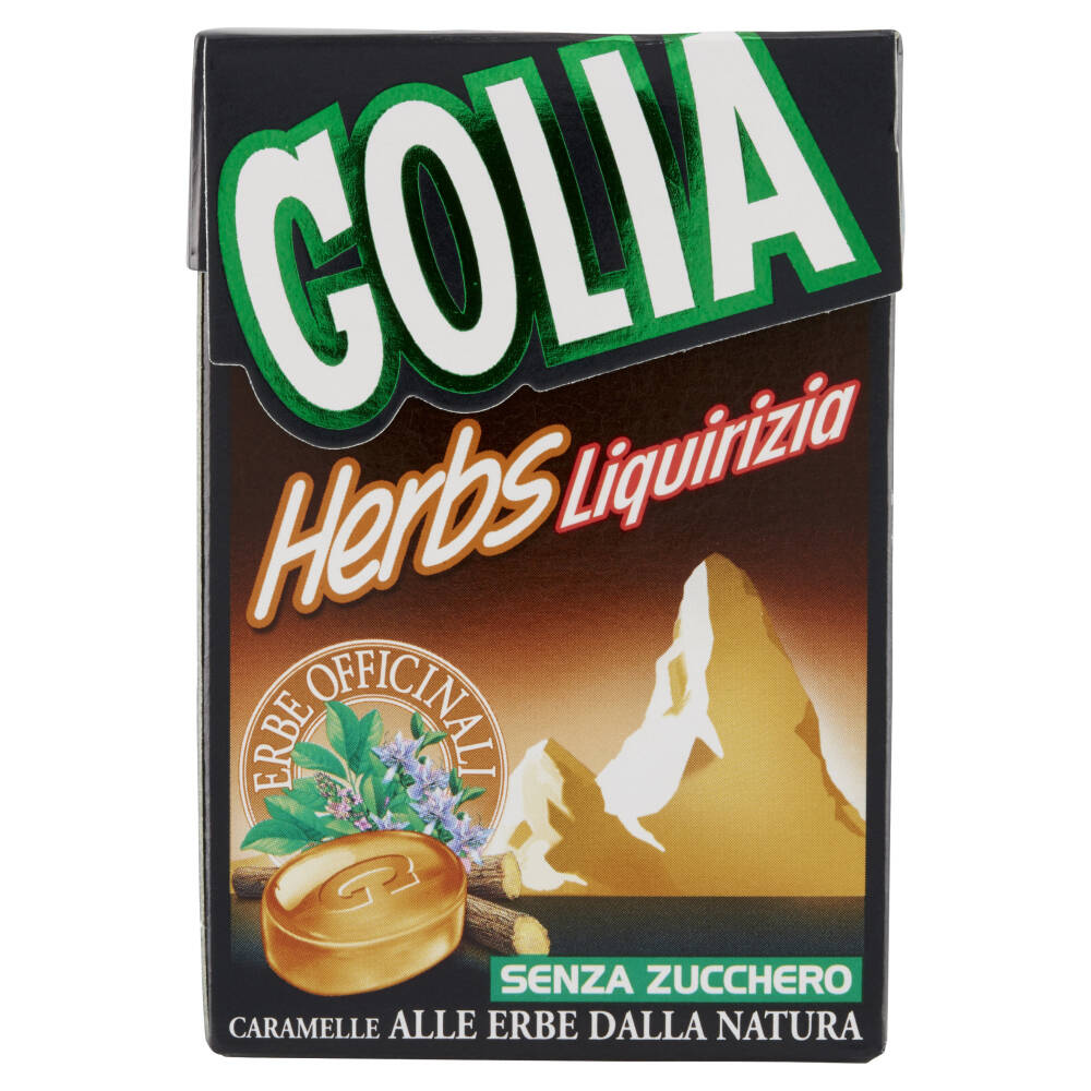 Caramelle dure gusto liquirizia con estratti di erbe, con edulcoranti. Senza zucchero. Senza glutine