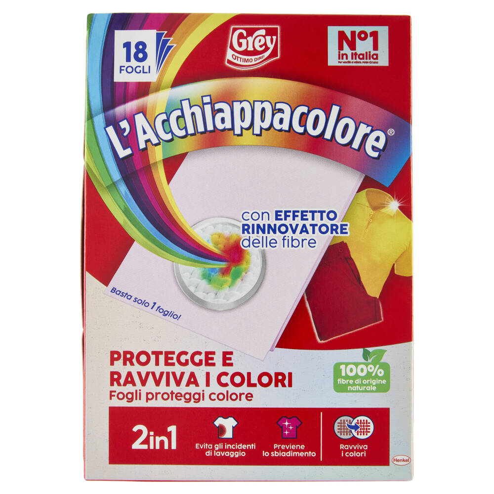 18 Fogli N°1 in Italia - Per vendite a valore. Fonte Circana Con Effetto Rinnovatore delle fibre Basta solo 1 foglio! Fogli proteggi colore 100% Fibre di origine naturale 2in1 Evita gli incidenti di lavaggio Previene lo sbiadimento Ravviva i colori