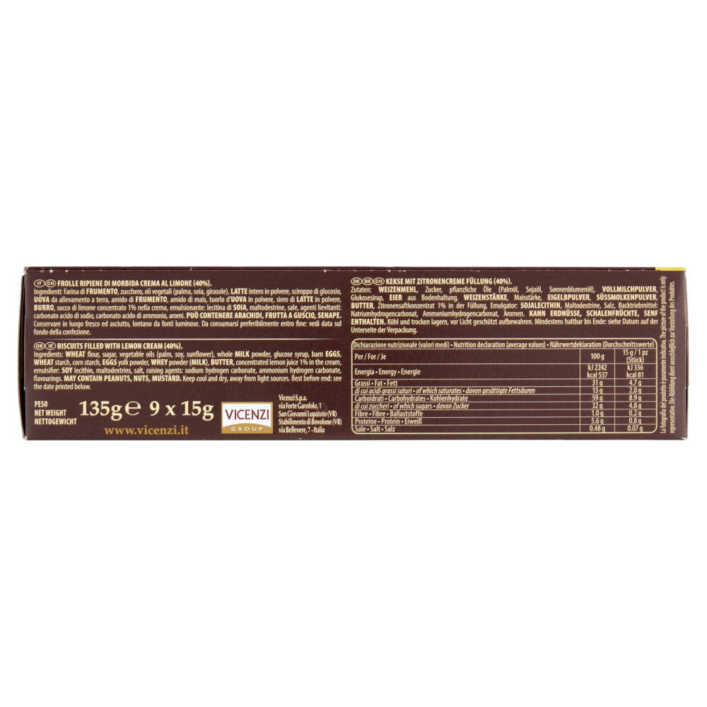 Farina di frumento Zucchero Oli vegetali (palma, soia, girasole) Latte intero in polvere Sciroppo di glucosio Uova da allevamento a terra Amido di frumento Amido di mais Tuorlo d'uova in polvere Siero di latte in polvere Burro Succo di limone concentrato 1% nella crema Emulsionante: lecitina di soia Maltodestrine Sale Agenti lievitanti: carbonato acido di sodio, carbonato acido di ammonio Aromi Può contenere arachidi, frutta a guscio, senape