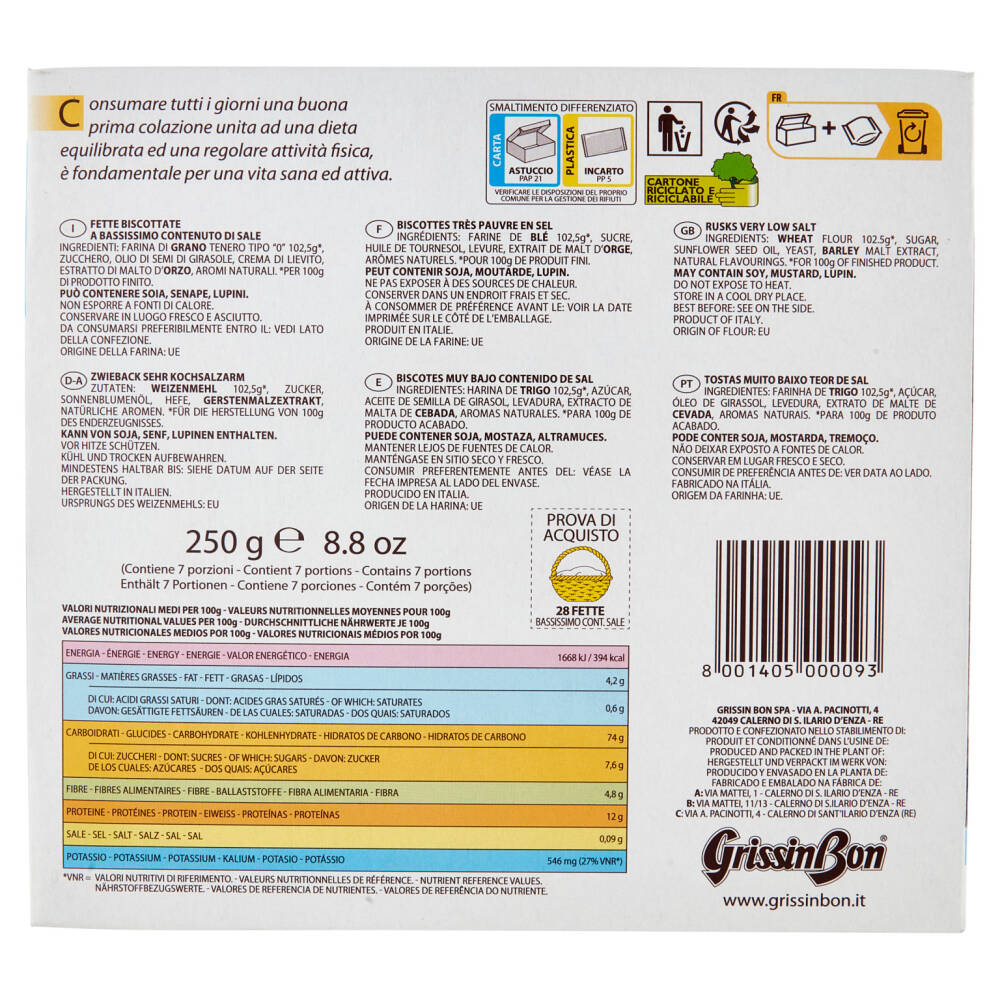 Fette biscottate a bassissimo contenuto di sale