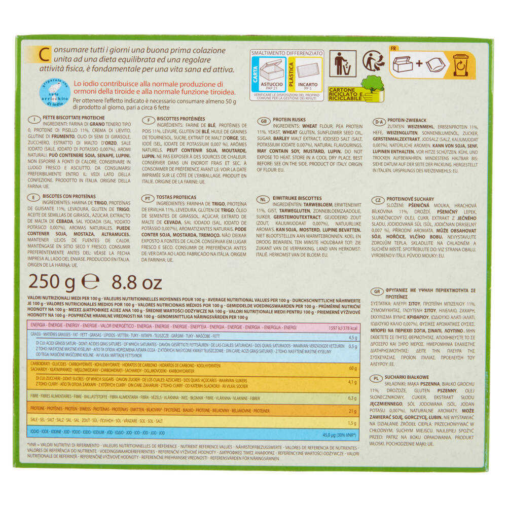 Porzioni Salvafreschezza - Da 4 fette Novità! - Ad alto contenuto di proteine - A basso contenuto di grassi saturi - Fonte di fibre - A tasso ridotto di zuccheri -35%* Rispetto alla media delle fette biscottate più vendute * Fonte Unione Italiana Food