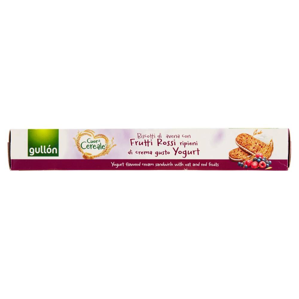 Preparato di frutti rossi 5% [frutti 49% (fragole, lampone e ribes nero), sciroppo di glucosio-fruttosio, sciroppo di glucosio, umidificante (glicerolo), zuccheri, fibre di frumento, agente gelificante (pectina), grasso vegetale (palma), correttori di acidità (acido malico e acido citrico), aromi]