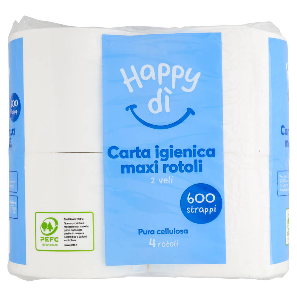 Happy dì Carta Igienica 2 Veli 600 Strappi 4 Rotoli