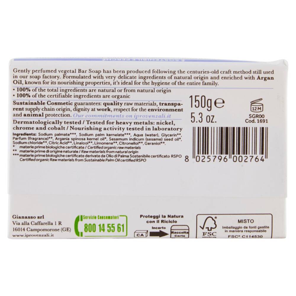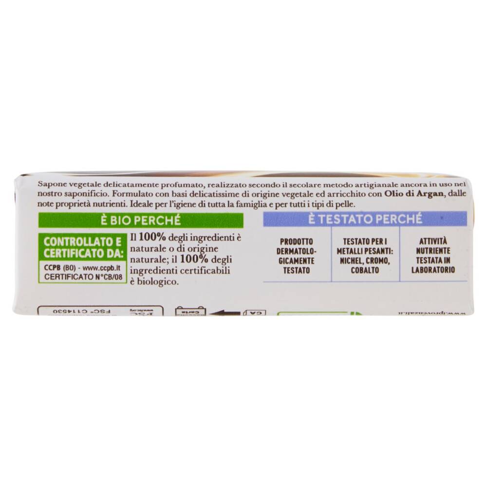 Sapone vegetale delicatamente profumato, realizzato secondo il secolare metodo artigianale ancora in uso nel nostro saponificio. Formulato con basi delicatissime di origine vegetale ed arricchito con Olio di Argan, dalle note proprietà nutrienti. Ideale per l'igiene di tutta la famiglia e per tutti i tipi di pelle.