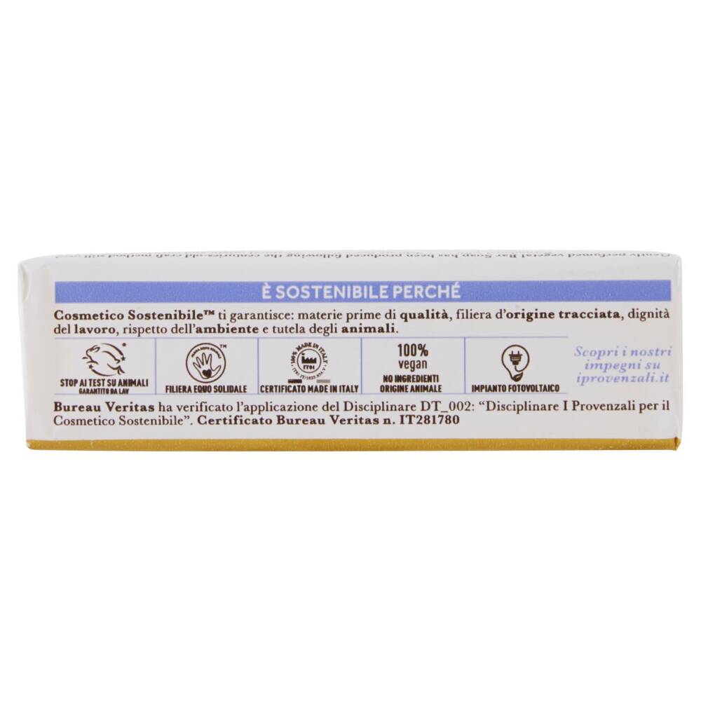 Sodium palmate*** Sodium palm kernelate*** Aqua (water) Glycerin** Parfum (fragrance)** Argania spinosa kernel oil* Sesamum indicum (sesame) seed oil* Sodium chloride** Citric Acid** Linalool** Limonene** Citronellol** Geraniol** *materie prime biologiche certificate **materie prime di origine naturale ***materie prime biologiche certificate derivate da olio di palma sostenibile certificato RSPO