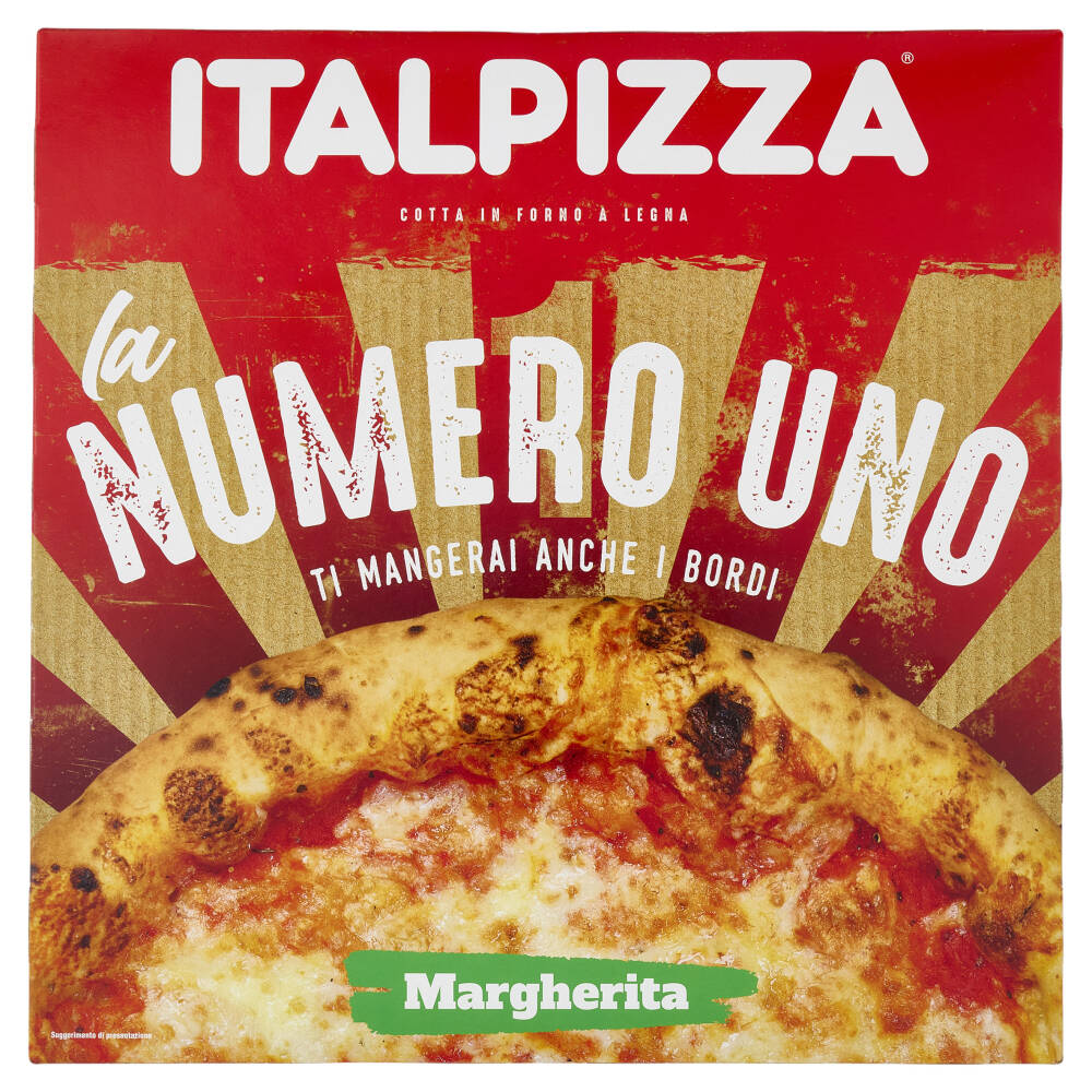 Impasto (farina di grano tenero, acqua, sale, lievito) Mozzarella 22% (latte, sale, caglio microbico, fermenti lattici) Salsa di pomodoro 20% (passata di pomodoro, polpa di pomodoro, olio extra vergine di oliva, sale, zucchero, origano, basilico) Olio di semi di girasole Può contenere soia e senape