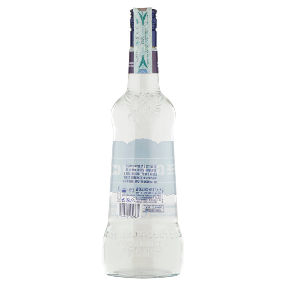 Keglevich vodka è ottenuta da un mix di 60% frumento e 40% triticale. Pura e nobile vodka distillata in 6 passaggi dai nostri mastri distillatori.