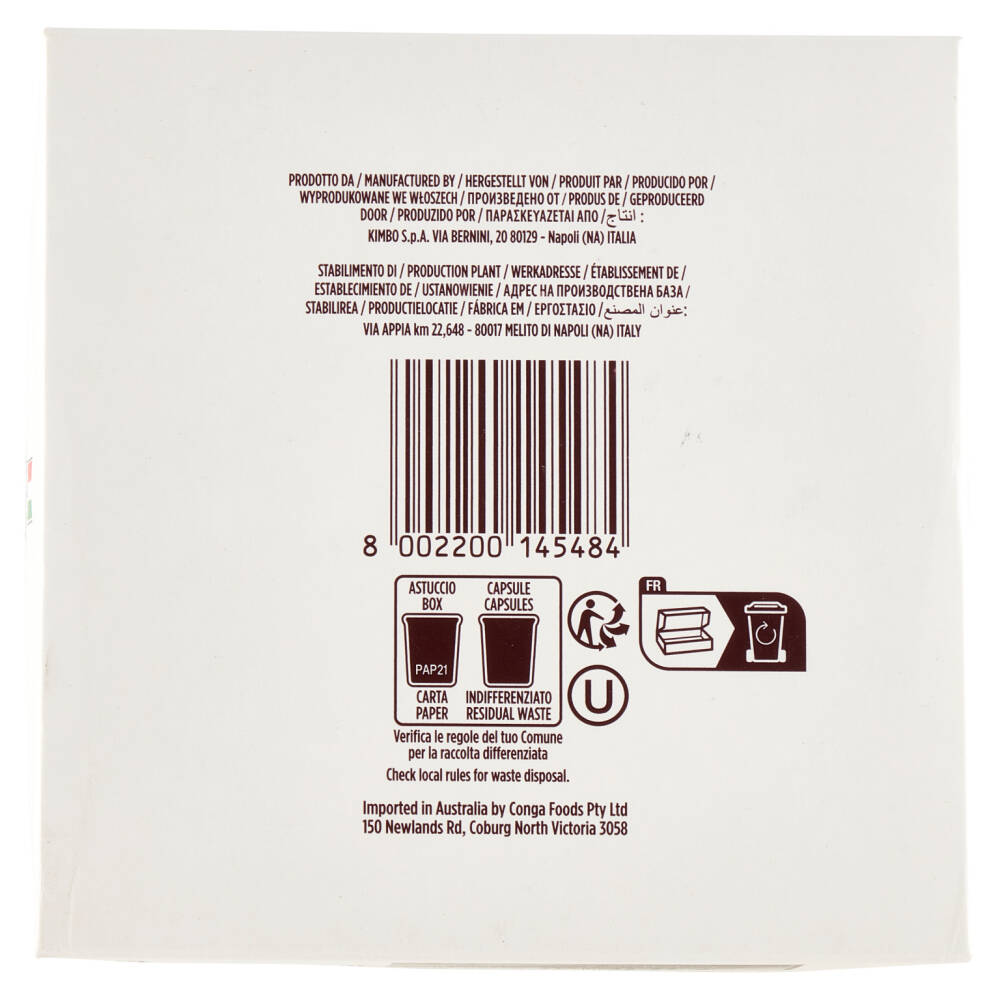 Italian quality Il talento napoletano della tostatura 12/13 Intensità Tostatura scura 16 Capsule Compatibili con le macchine ad uso domestico Nescafé Dolce Gusto* *Questi marchi non sono di proprietà di Kimbo