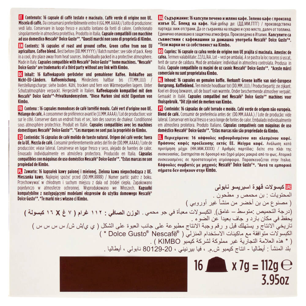 Contenuto: 16 capsule di caffè tostato e macinato. Caffè verde di origine non UE. Miscela di caffè