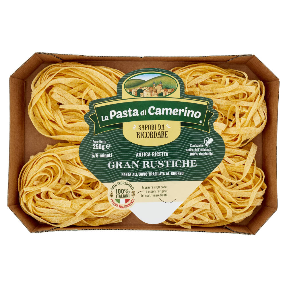 È qui che nasce La Pasta di Camerino, ruvida e porosa come quella fatta in casa, realizzata con cura e nel rispetto dei migliori metodi artigianali. Perfetta per catturare i sughi ed esaltare ogni piatto.