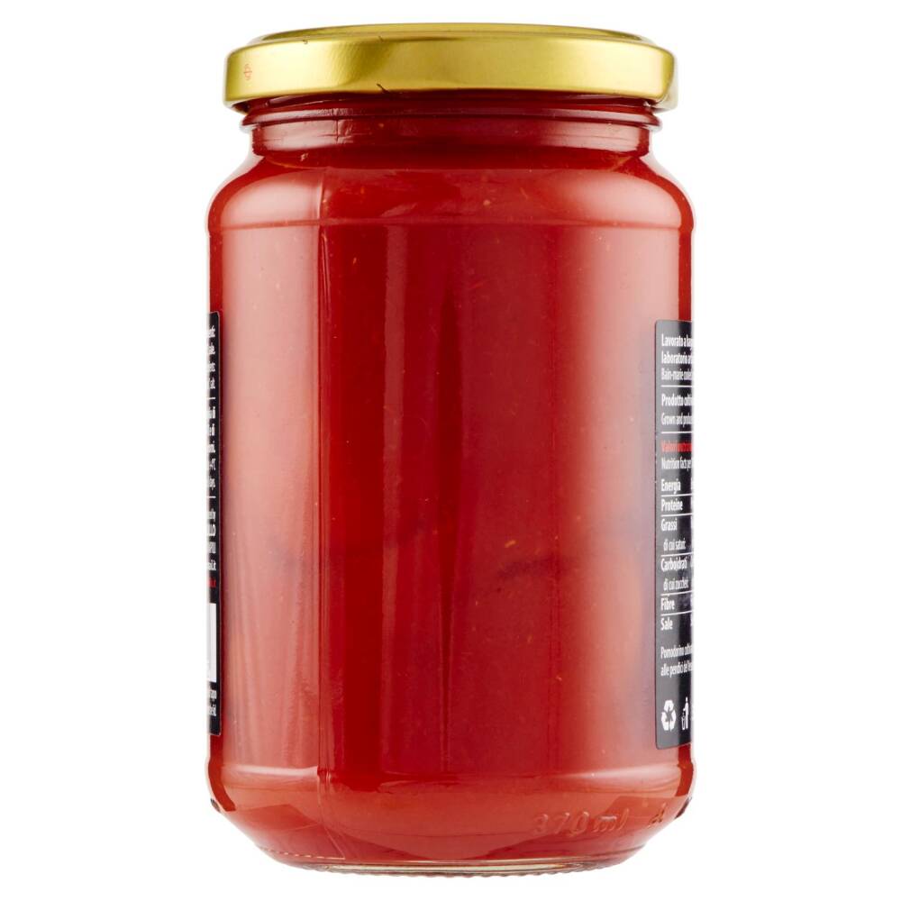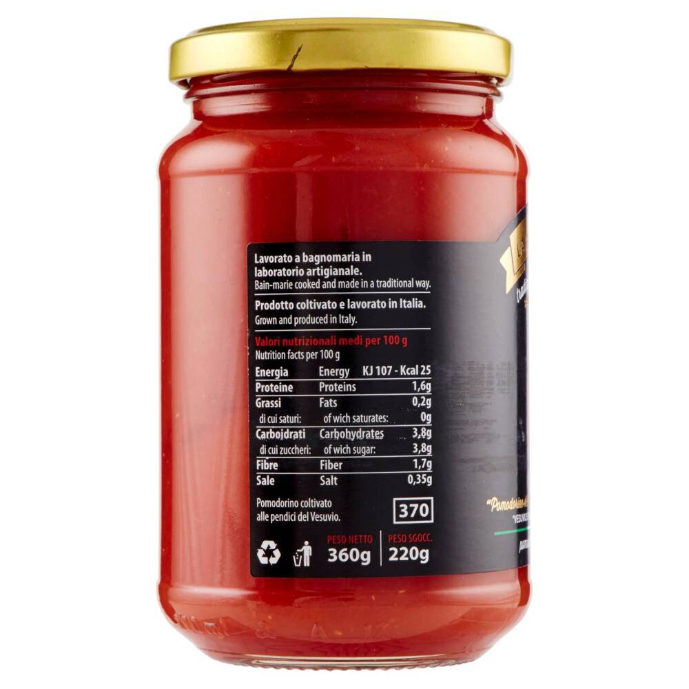 Lavorato a bagnomaria in laboratorio artigianale. Prodotto coltivato e lavorato in Italia. Pomodorino coltivato alle pendici del Vesuvio.