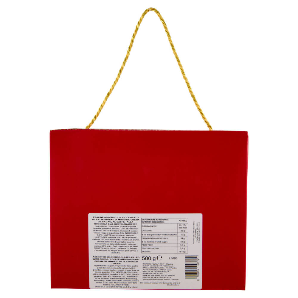 Praline assortite di cioccolato al latte ripiene di morbida crema al cacao, al caffè, alla nocciola e al gusto amaretto