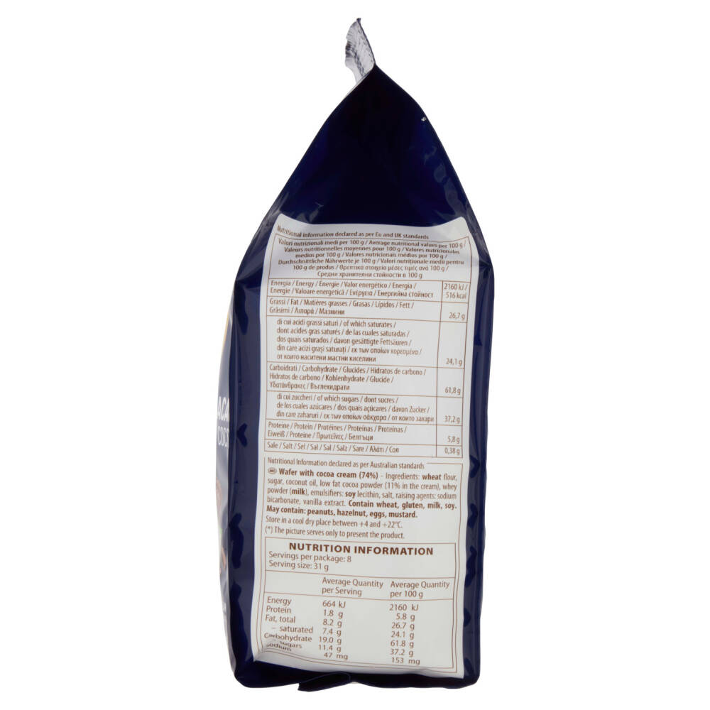 Farina di grano tenero Zucchero Olio di cocco Cacao magro in polvere (11% nella crema) Siero di latte in polvere Emulsionanti: lecitina di soia Sale Agenti lievitanti: carbonato acido di sodio Estratto di vaniglia Può contenere arachidi, frutta a guscio, uova e senape