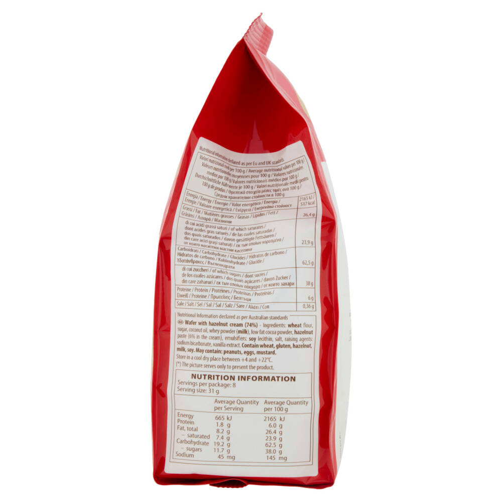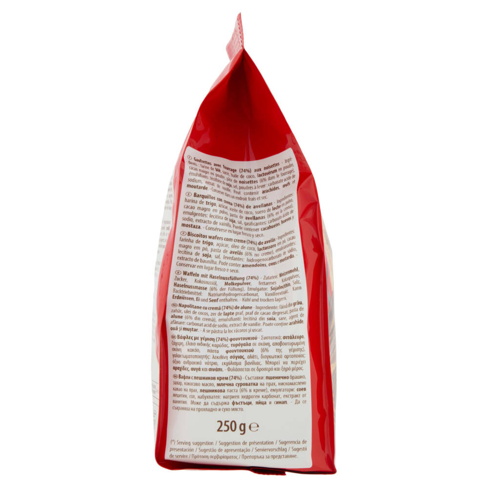 Farina di grano tenero Zucchero Olio di cocco Siero di latte in polvere Cacao magro in polvere Pasta di nocciole (6% nella crema) Emulsionanti: lecitina di soia Sale Agenti lievitanti: carbonato acido di sodio Estratto di vaniglia Può contenere arachidi, uova e senape