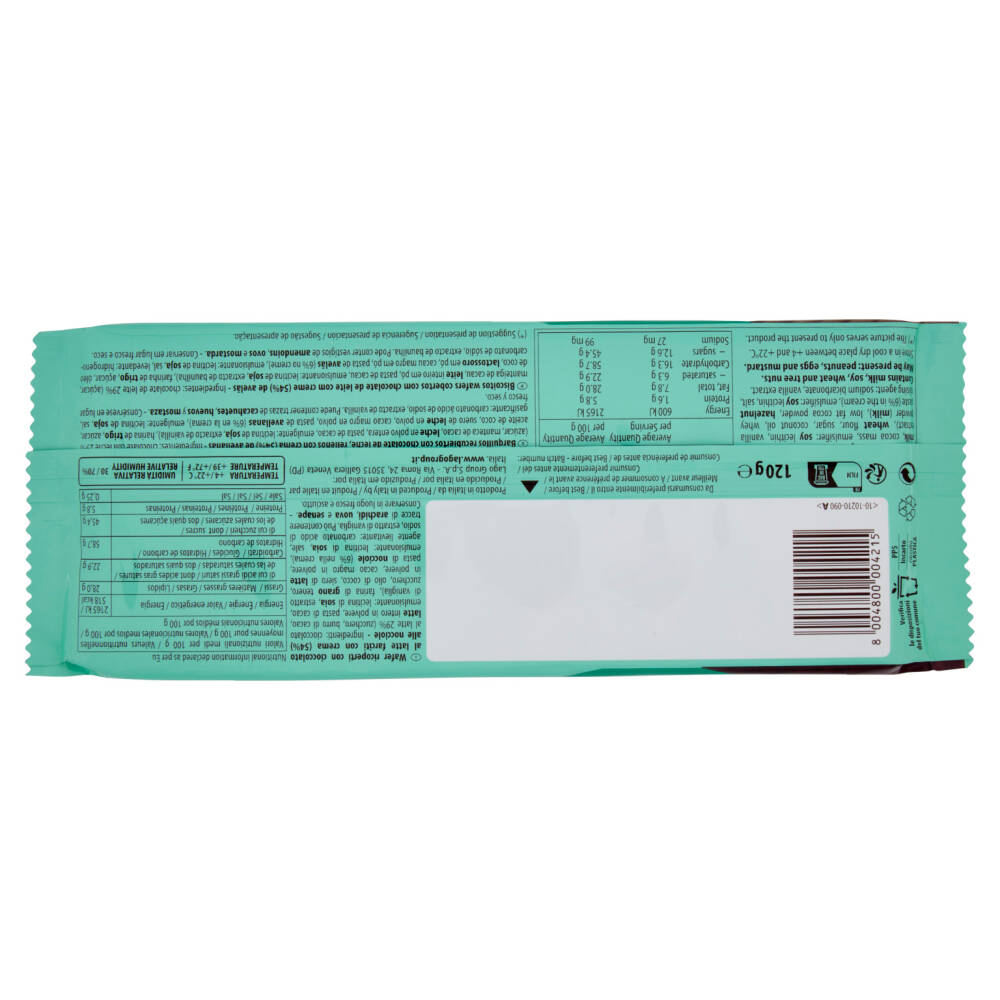 Cioccolato al latte 29% (zucchero, burro di cacao, latte intero in polvere, pasta di cacao, emulsionante: lecitina di soia, estratto di vaniglia) Farina di grano tenero Zucchero Olio di cocco Siero di latte in polvere Cacao magro in polvere Pasta di nocciole (6% nella crema) Emulsionante: lecitina di soia Sale Agente lievitante: carbonato acido di sodio Estratto di vaniglia Può contenere tracce di arachidi, uova e senape