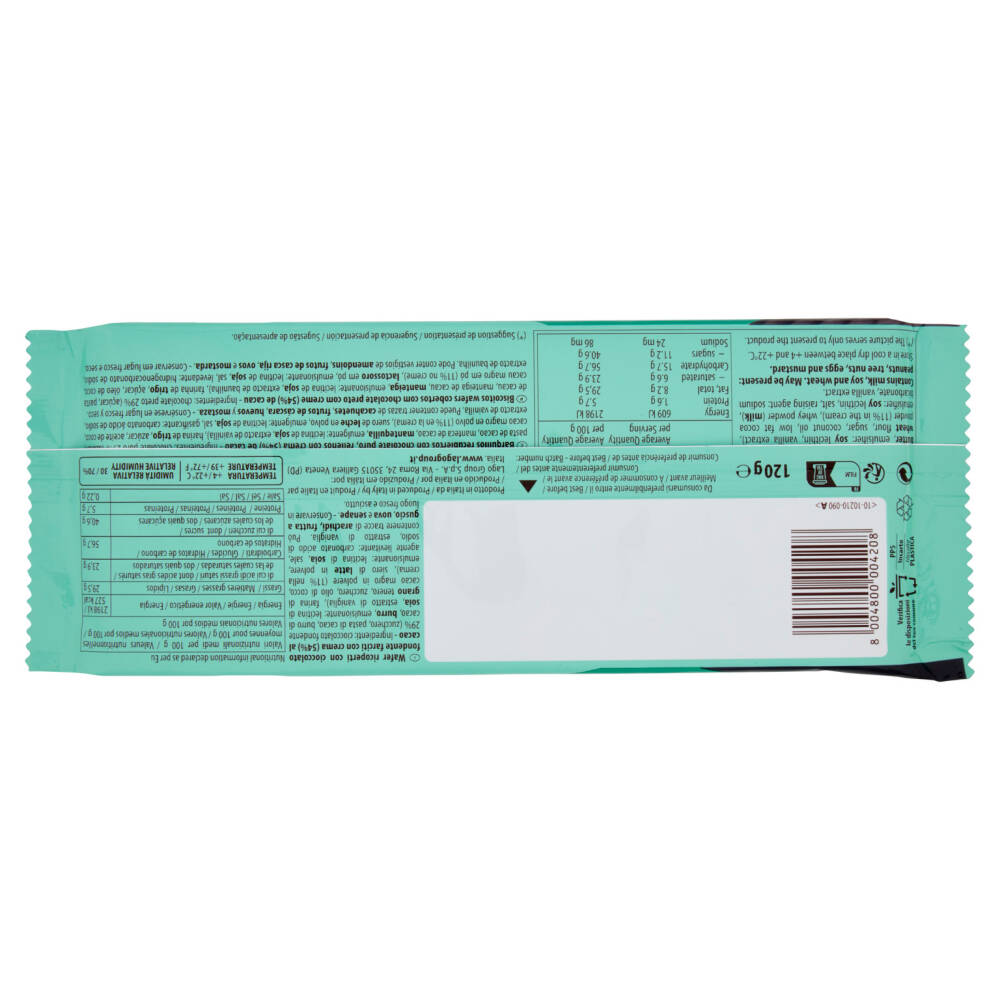 Cioccolato fondente 29% (zucchero, pasta di cacao, burro di cacao, burro, emulsionante: lecitina di soia, estratto di vaniglia) Farina di grano tenero Zucchero Olio di cocco Cacao magro in polvere (11% nella crema) Siero di latte in polvere Emulsionante: lecitina di soia Sale Agente lievitante: carbonato acido di sodio Estratto di vaniglia Può contenere tracce di arachidi, frutta a guscio, uova e senape