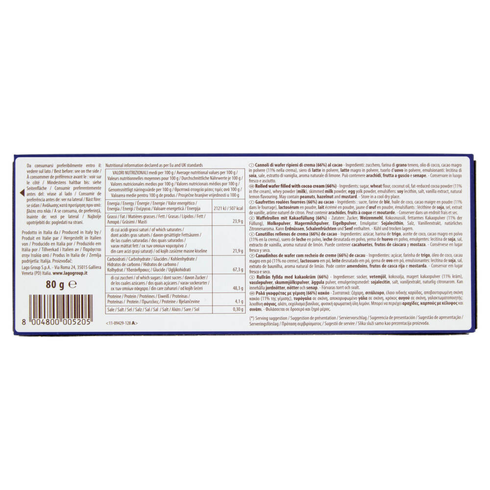 Zucchero Farina di grano tenero Olio di cocco Cacao magro in polvere (11% nella crema) Siero di latte in polvere Latte magro in polvere Tuorlo d'uovo in polvere Emulsionanti: lecitina di soia Sale Estratto di vaniglia Aroma naturale di limone Può contenere arachidi, frutta a guscio e senape