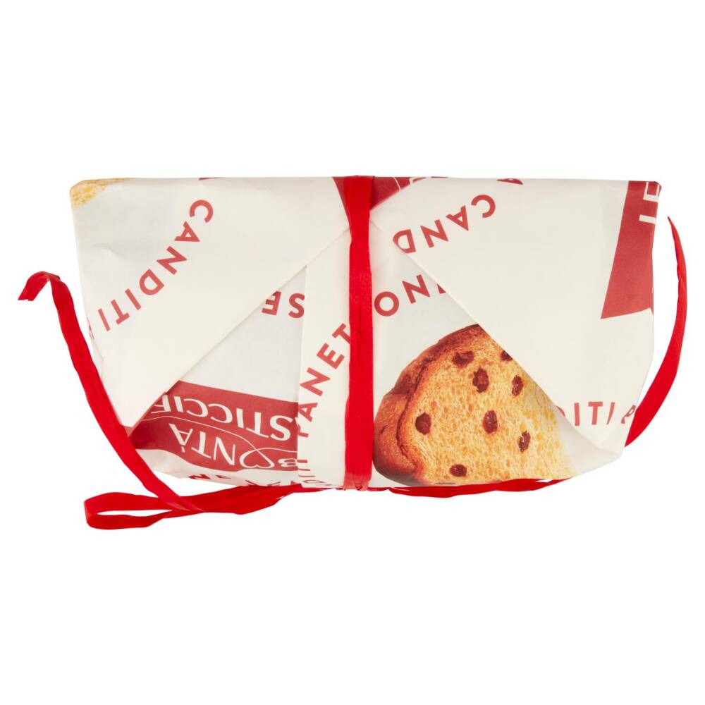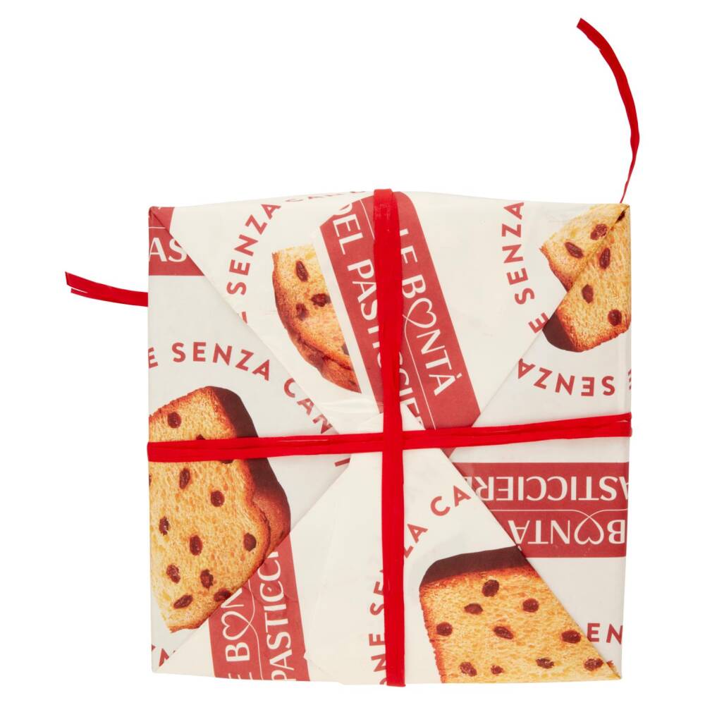 Farina di grano tenero tipo 0 Uva sultanina 20% Zucchero Burro Tuorlo d'uovo fresco da allevamento a terra 7,8% Lievito naturale (contiene grano) Emulsionanti: mono- e digliceridi degli acidi grassi Sale Aromi Latte scremato in polvere Può contenere frutta a guscio e soia