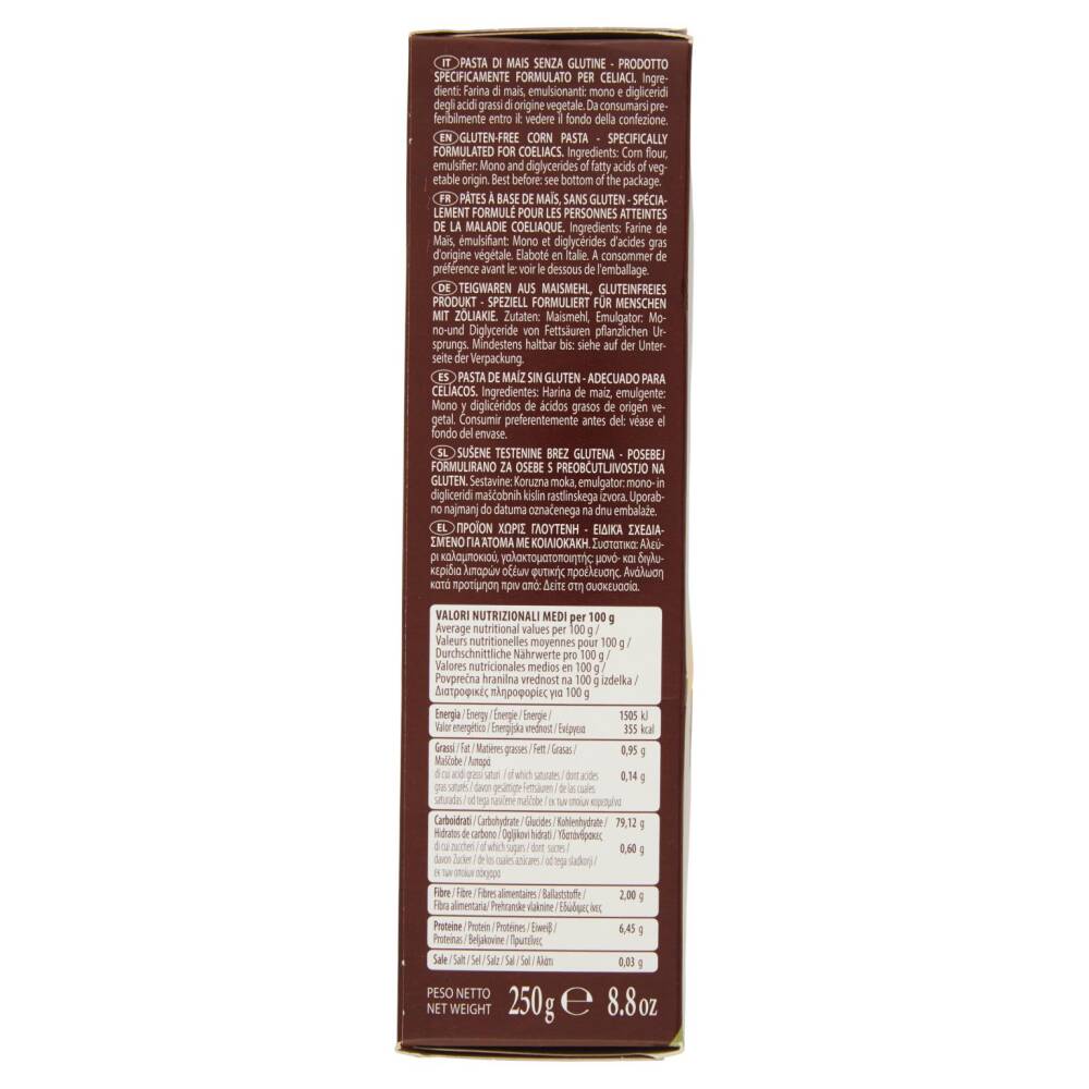 Da sempre, pasta di solo mais Senza Glutine Con pochi grassi Product of Italy Senza uova e lattosio