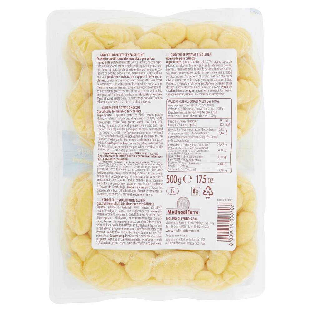 Modalità di cottura: Mentre l'acqua salata bolle, immergere gli gnocchi. Quando affiorano, attendere 1-2 minuti, scolare e servire.
