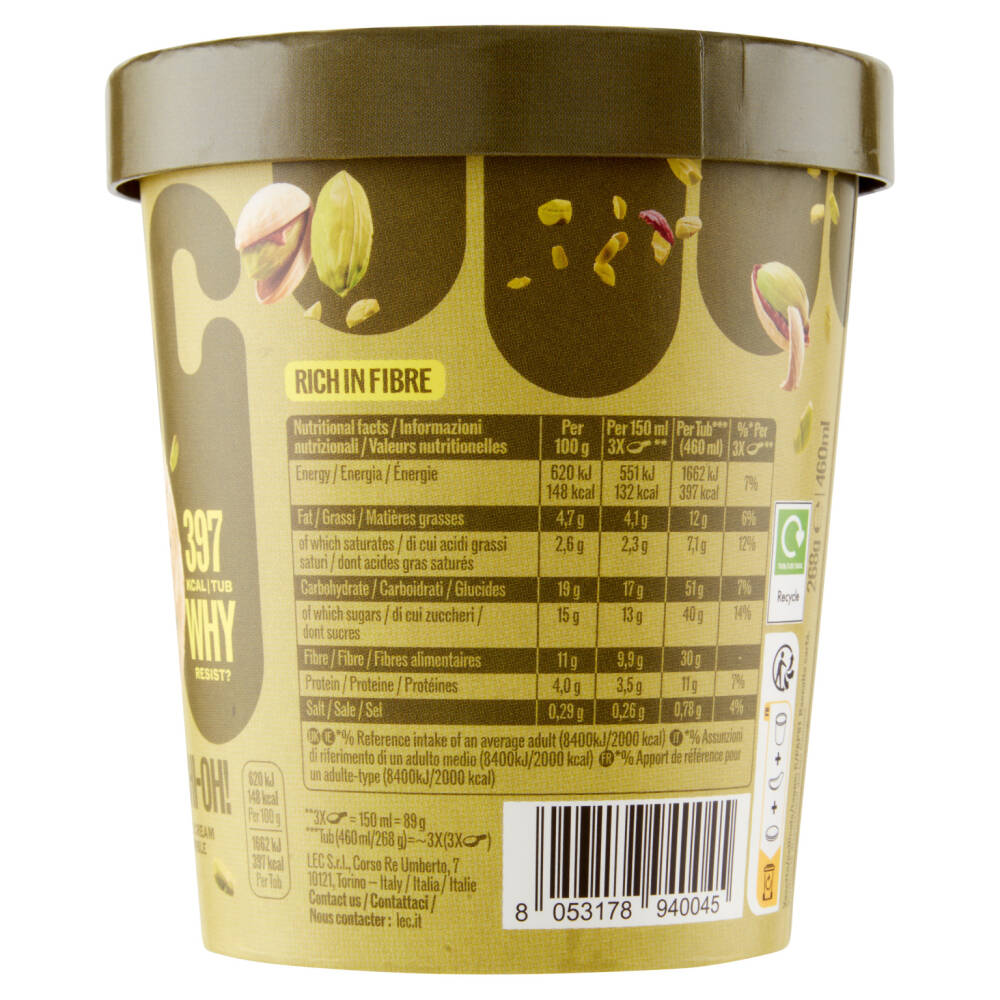 | Per 100 g | Per 150 ml 3X cucchiai ** | Per Tub*** (460 ml) | %* Per 3X cucchiai ** | |