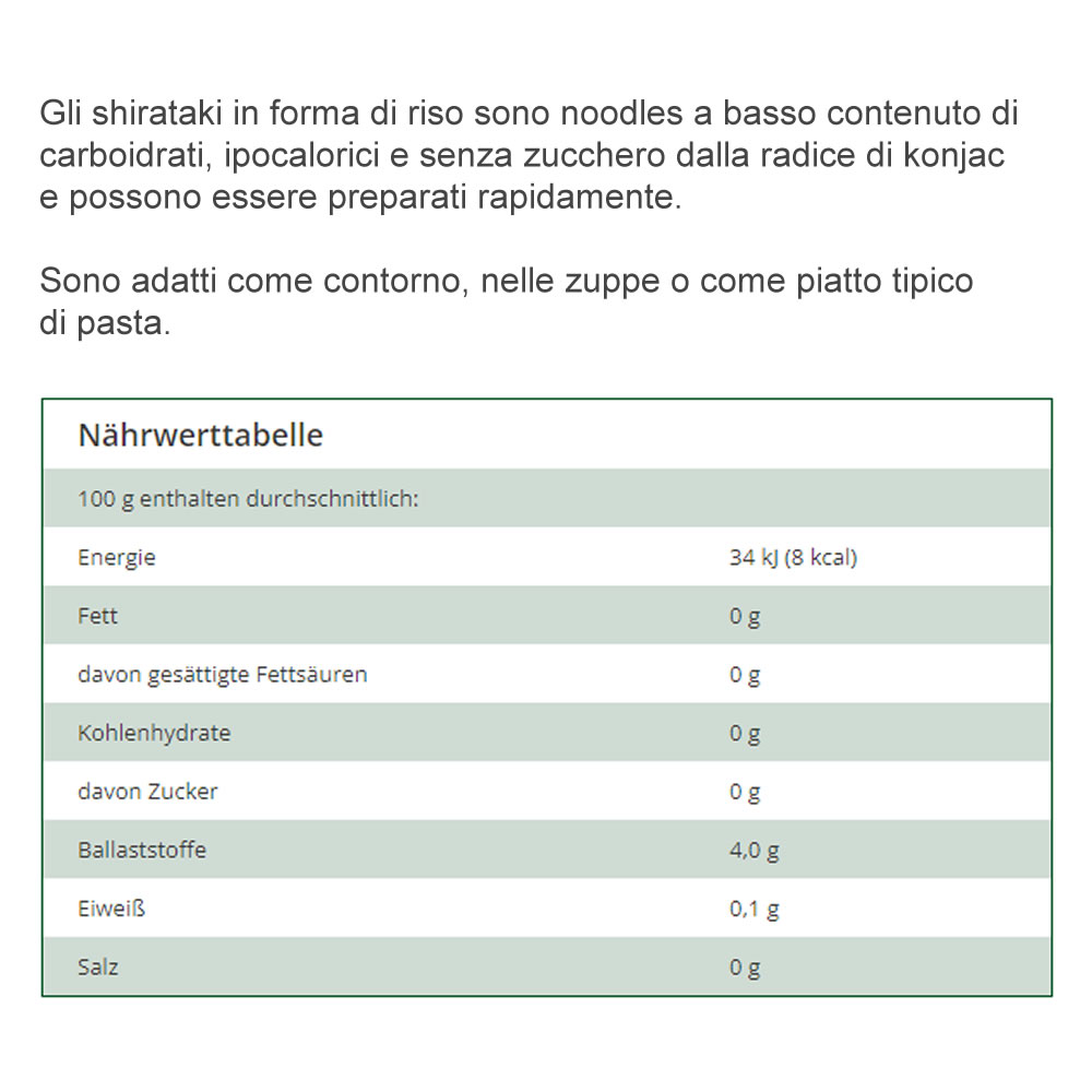 Riso Shirataki Konjac, noodles a basso contenuto di carboidrati, Lien Ying 270 g