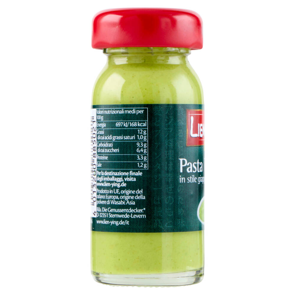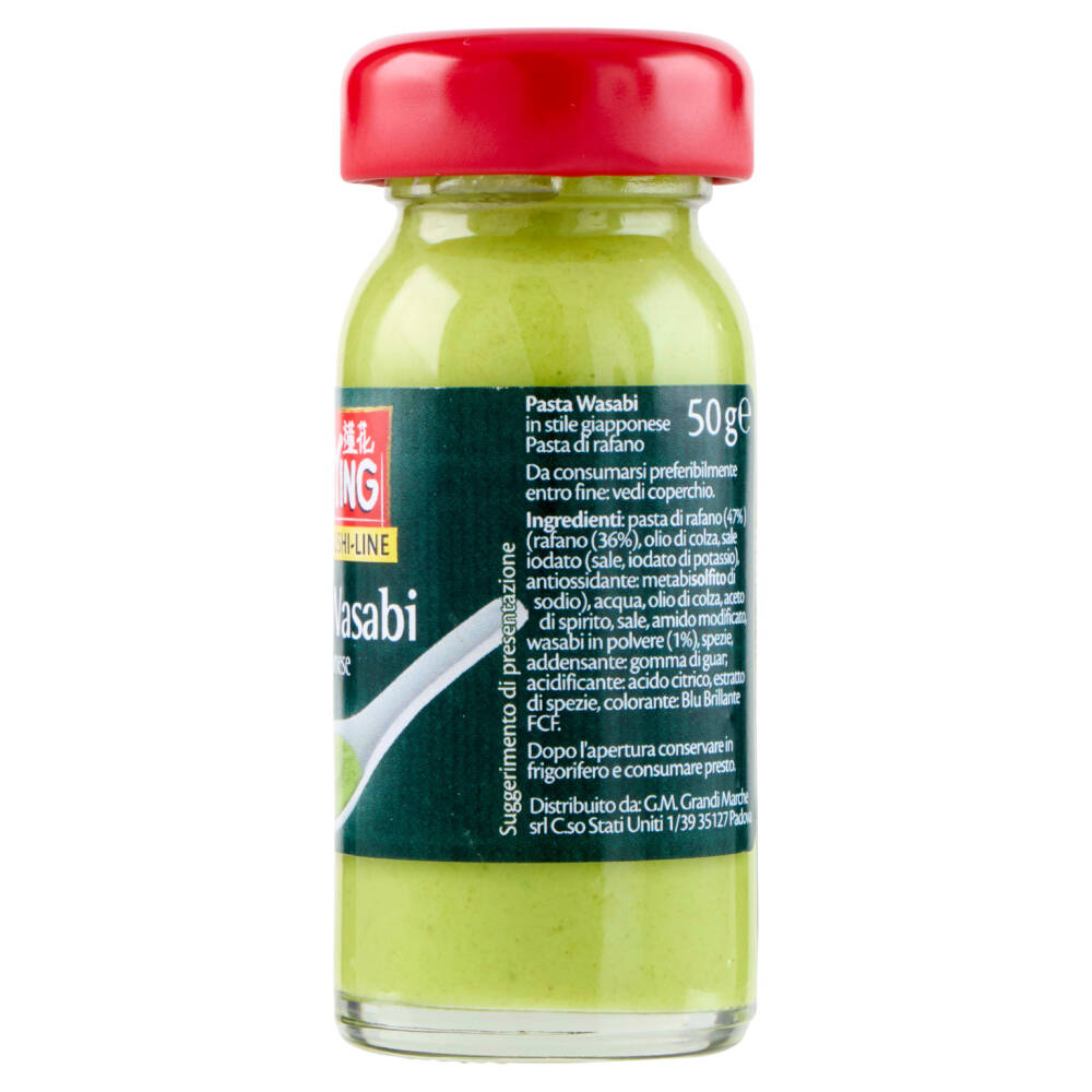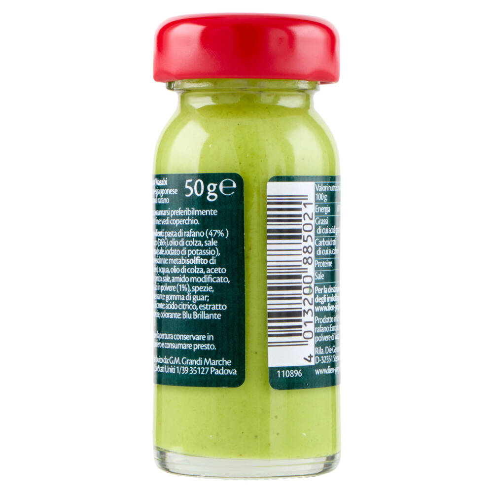 Pasta di rafano (47%) (rafano (36%), olio di colza, sale iodato (sale, iodato di potassio), antiossidante: metabisolfito di sodio) Acqua Olio di colza Aceto di spirito Sale Amido modificato Wasabi in polvere (1%) Spezie Addensante: gomma di guar Acidificante: acido citrico Estratto di spezie Colorante: blu brillante FCF