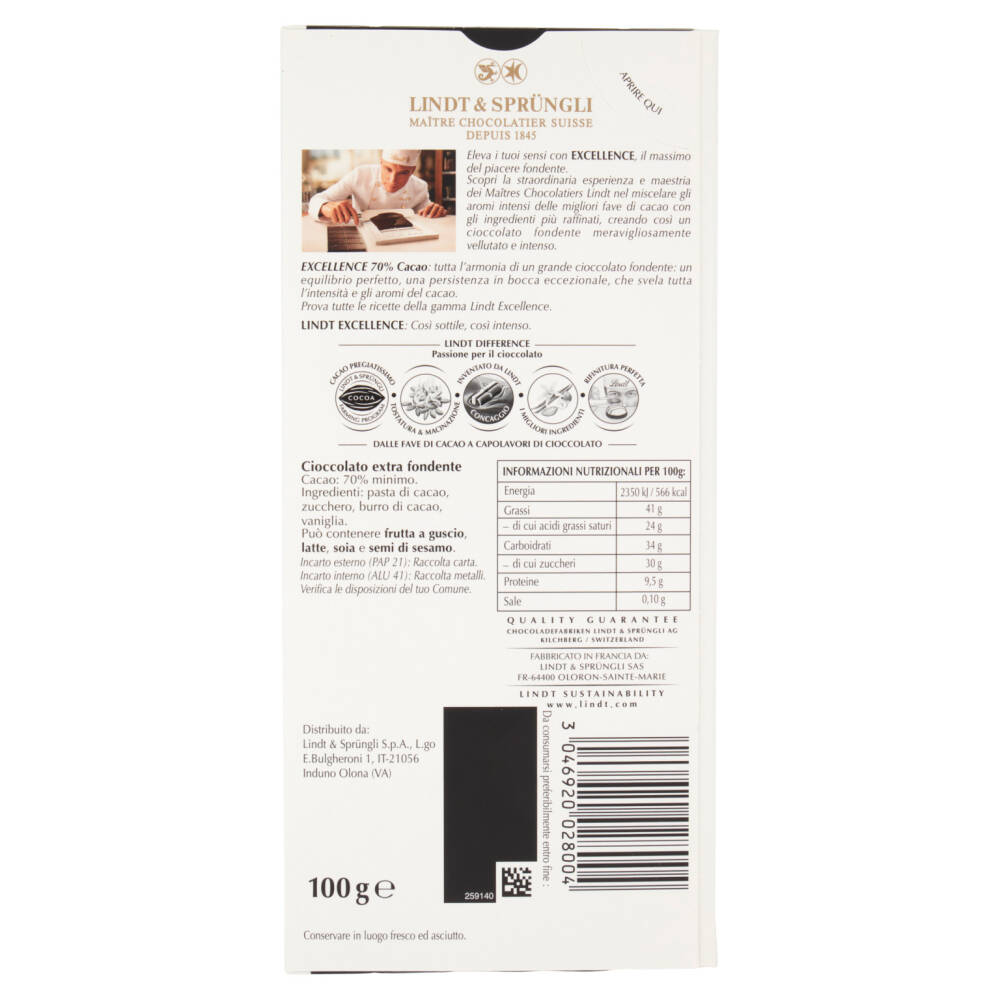 Excellence 70% Cacao: tutta l'armonia di un grande cioccolato fondente: un equilibrio perfetto, una persistenza in bocca eccezionale, che svela tutta l'intensità e gli aromi del cacao.