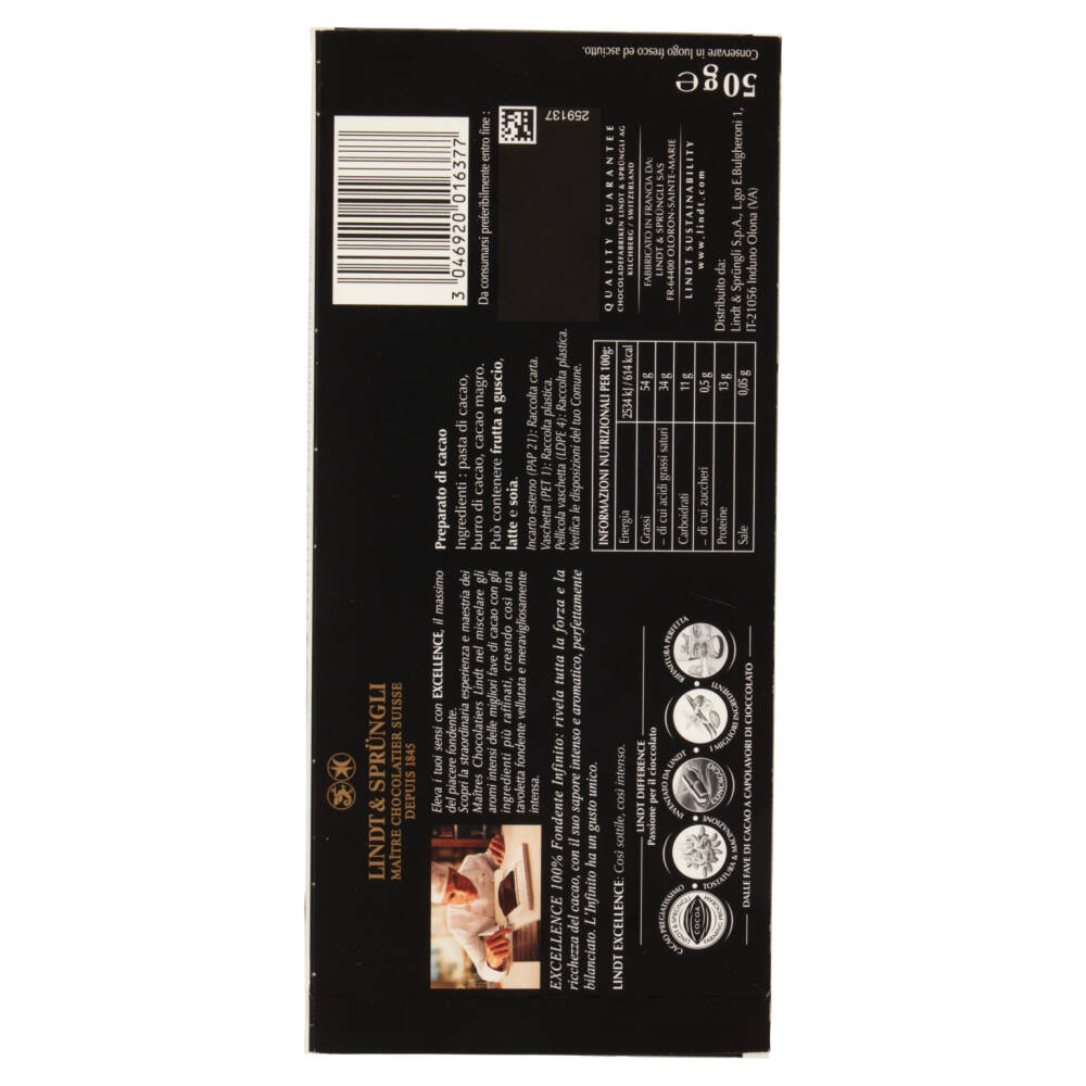 Excellence 100% Fondente Infinito: rivela tutta la forza e la ricchezza del cacao, con il suo sapore intenso e aromatico, perfettamente bilanciato. L'Infinito ha un gusto unico.