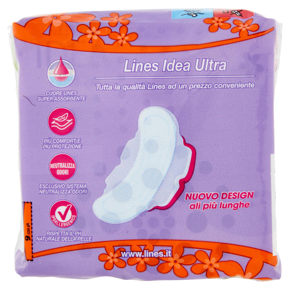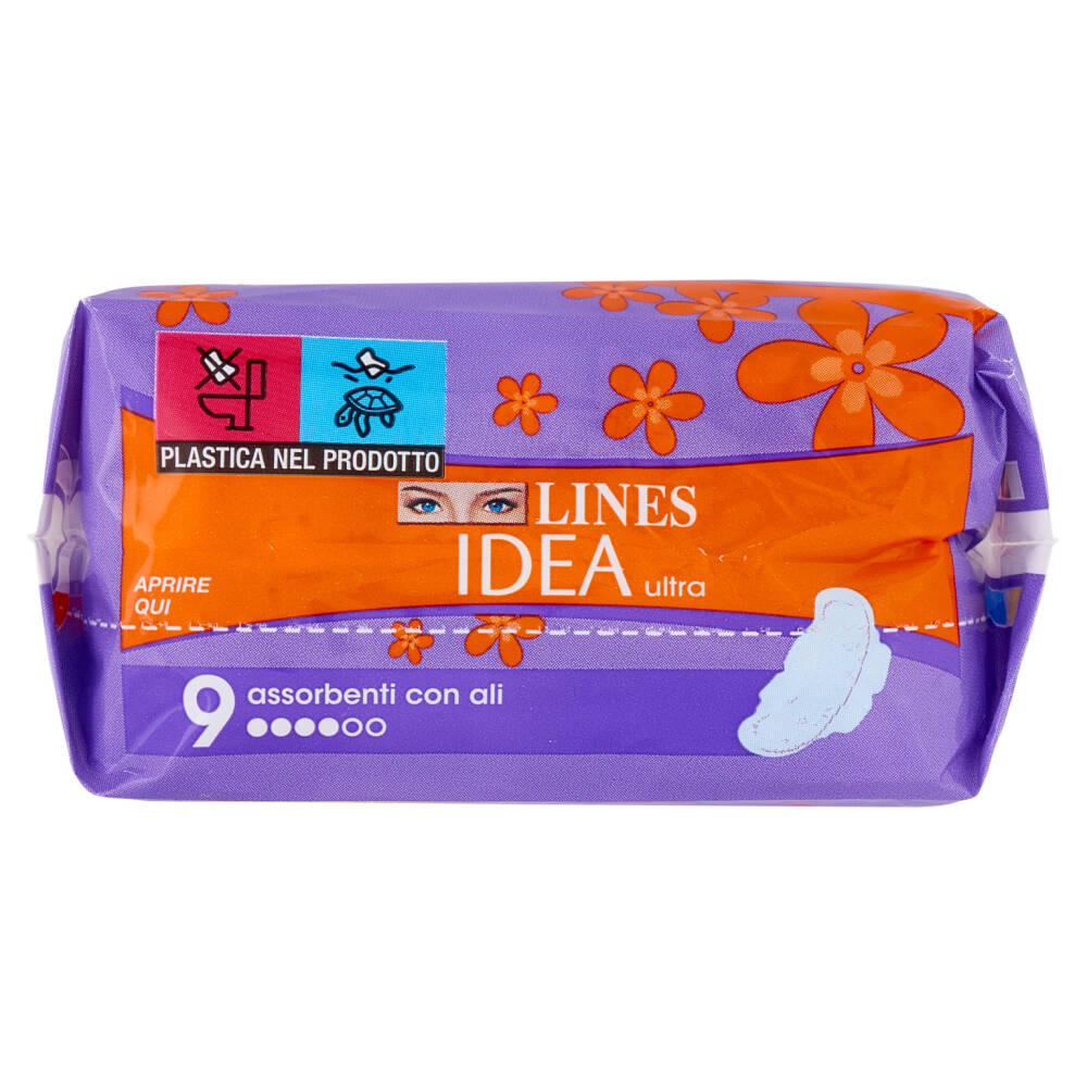 Novità* Il Lines più conveniente 9 Assorbenti con ali Assorbenza 4 su 6 *Area adesiva più ampia