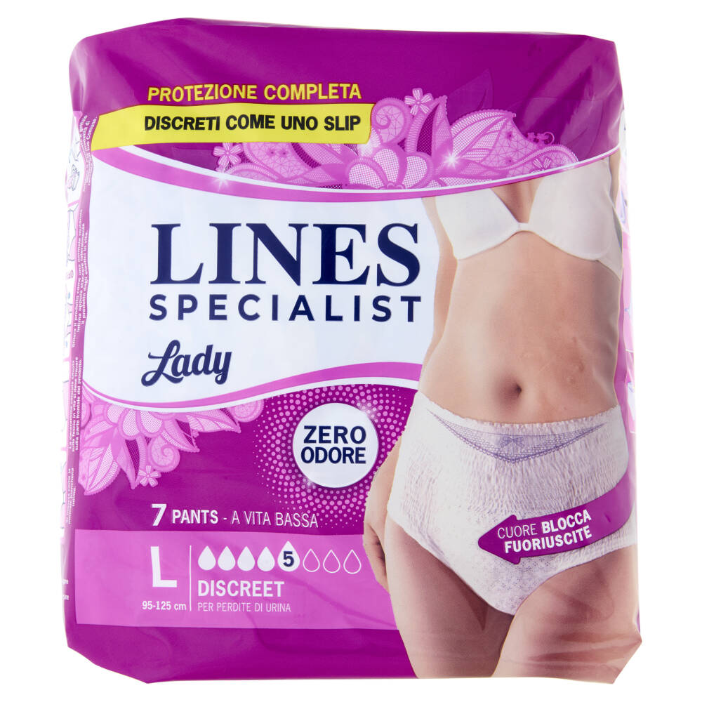 Protezione completa Discreti come uno slip Zero odore 7 Pants - a vita bassa Assorbenza 5 su 8 - Per perdite di urina Cuore blocca fuoriuscite 95-125 cm