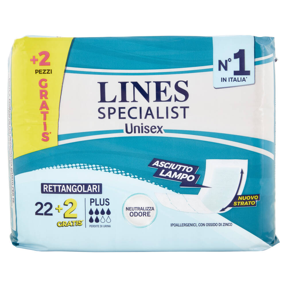 Prodotto in Italia Il rettangolare n°1 in Italia* Novità - Blocca Neutralizza odore Con Ossido di Zinco x22 Assorbenza 6 su 8 - Perdite di urina Ipoallergenico *Ausilio per incontinenti rettangolare più venduto in Italia negli ultimi 18 mesi (Dato Mass market, Farma e parafarma). Fonte Nielsen