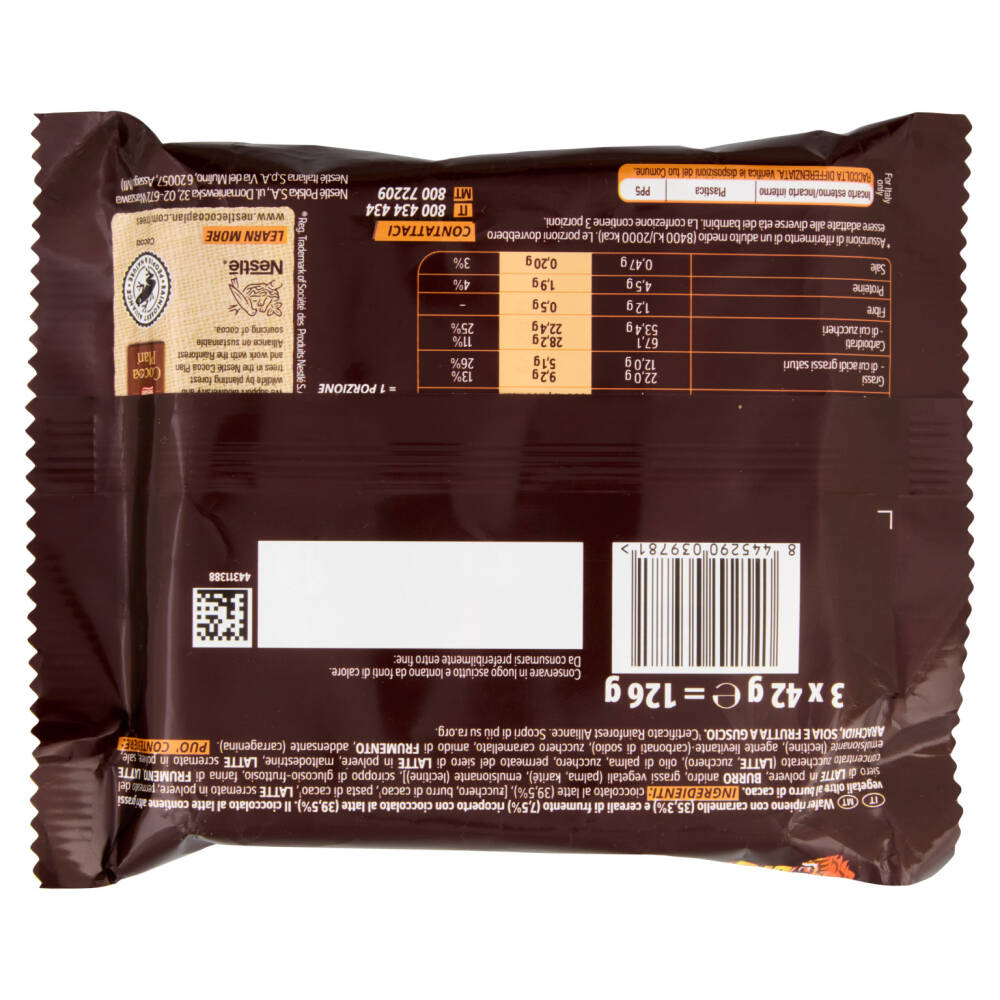 | Per 100 g | Per porzione (42 g) | % AR* per 42 g | |