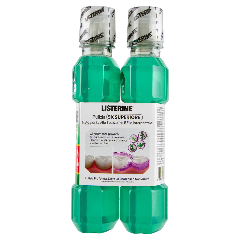 Utilizzato due volte al giorno, Listerine difesa denti e gengive dona protezione per denti e gengive più sani e una sensazione di pulizia 3 volte più duratura rispetto al solo spazzolino. È clinicamente provato: