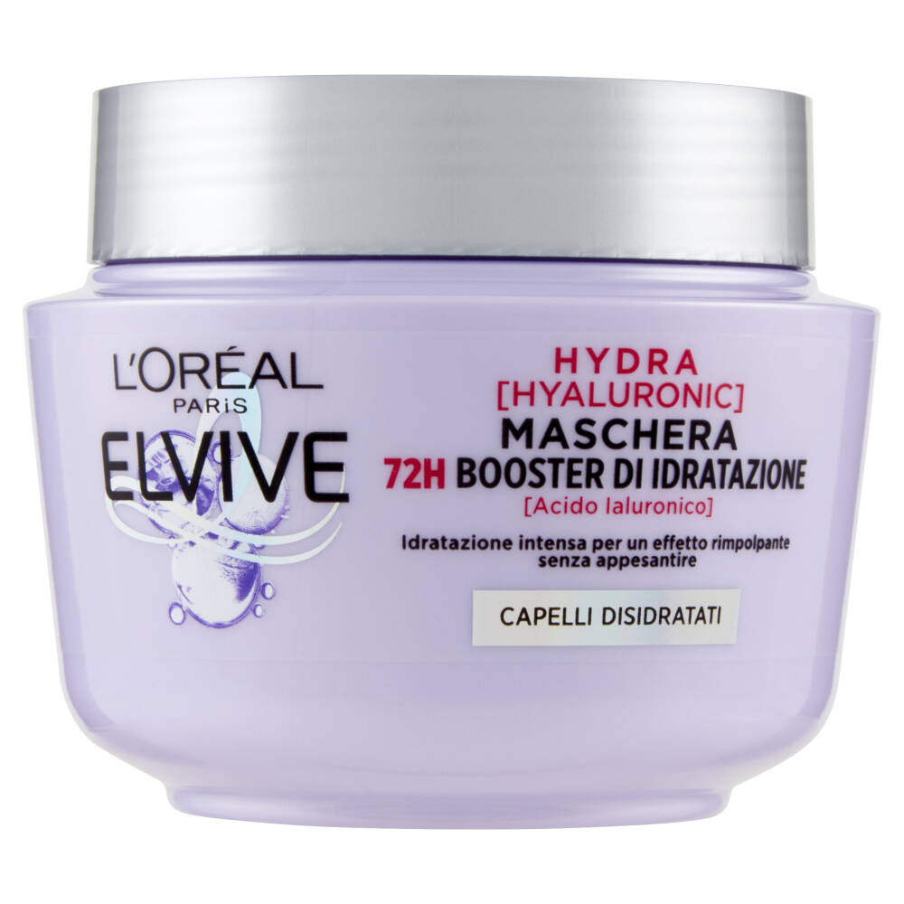 La nostra Maschera 72H Booster di Idratazione: Dona un'intensa e avvolgente idratazione, lasciando i capelli rimpolpati e 10 volte più idratati per 72H*, senza appesantirli. Con Acido Ialuronico, un attivo noto per trattenere efficacemente molecole di acqua.
