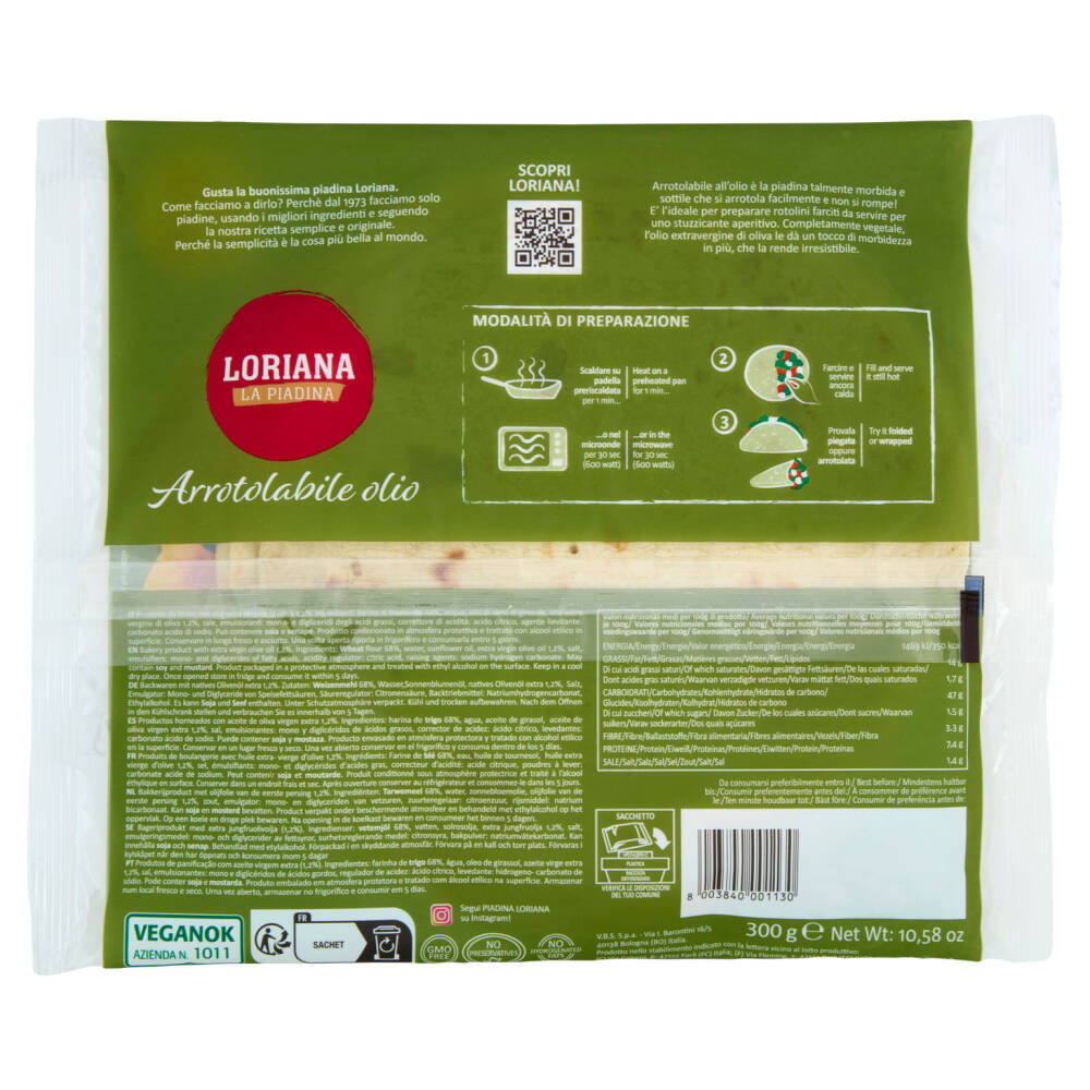 Arrotolabile all'olio è la piadina talmente morbida e sottile che si arrotola facilmente e non si rompe!