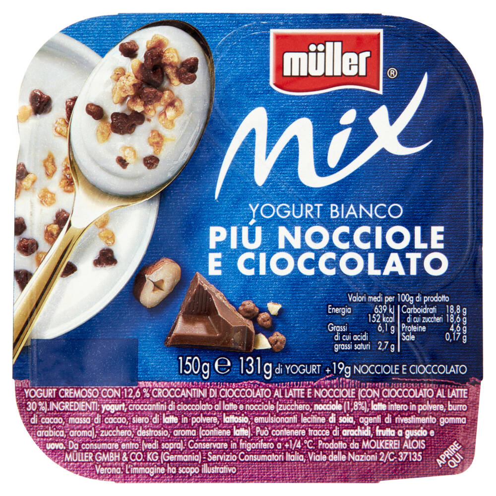 Yogurt Croccantini di cioccolato al latte e nocciole (zucchero, nocciole (1,8%), latte intero in polvere, burro di cacao, massa di cacao, siero di latte in polvere, lattosio, emulsionanti lecitine di soia, agenti di rivestimento gomma arabica, aroma) Zucchero Destrosio Aroma (contiene latte) Può contenere tracce di arachidi, frutta a guscio e uovo