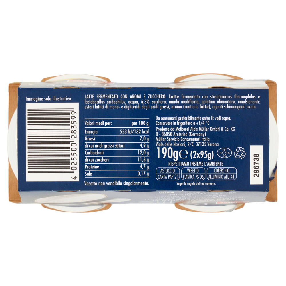 Latte fermentato con streptococcus thermophilus e lactobacillus acidophilus Acqua 6,3% zucchero Amido modificato Gelatina alimentare Emulsionanti: esteri lattici di mono- e digliceridi degli acidi grassi Aroma (contiene latte) Agenti schiumogeni: azoto