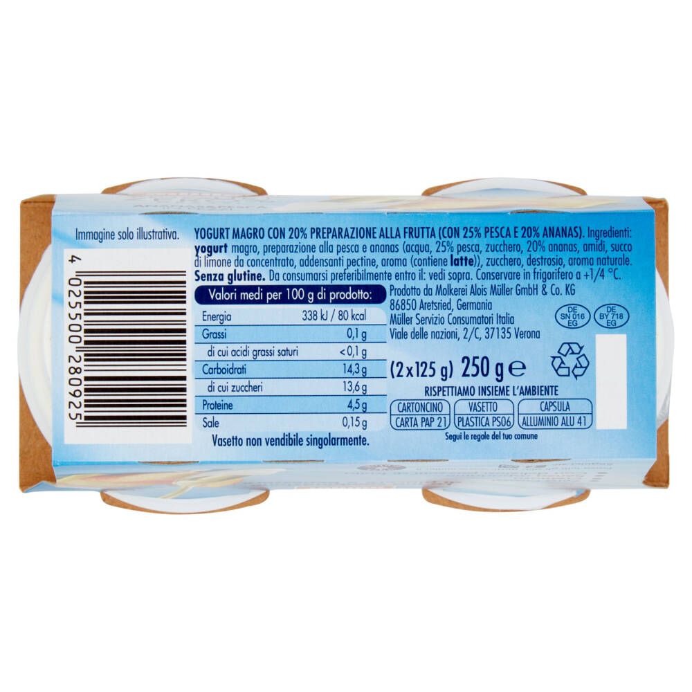 Yogurt magro con 20% preparazione alla frutta (con 25% pesca e 20% ananas)